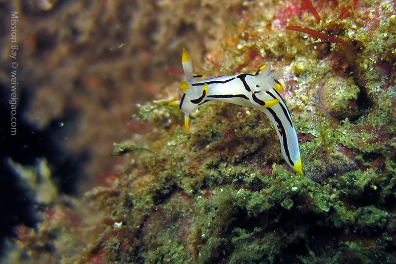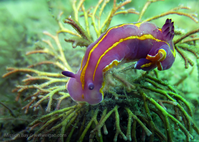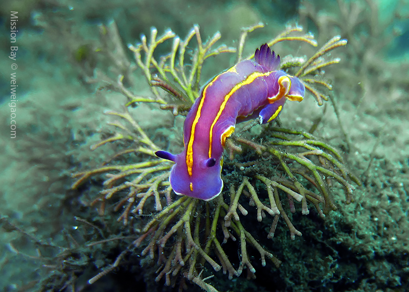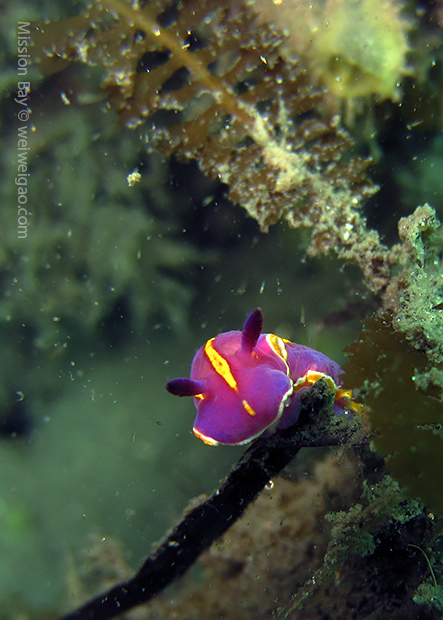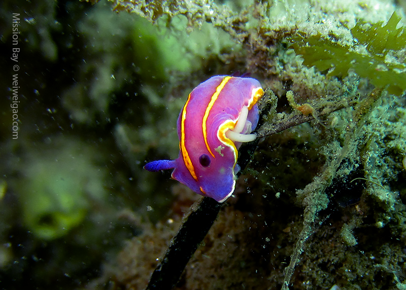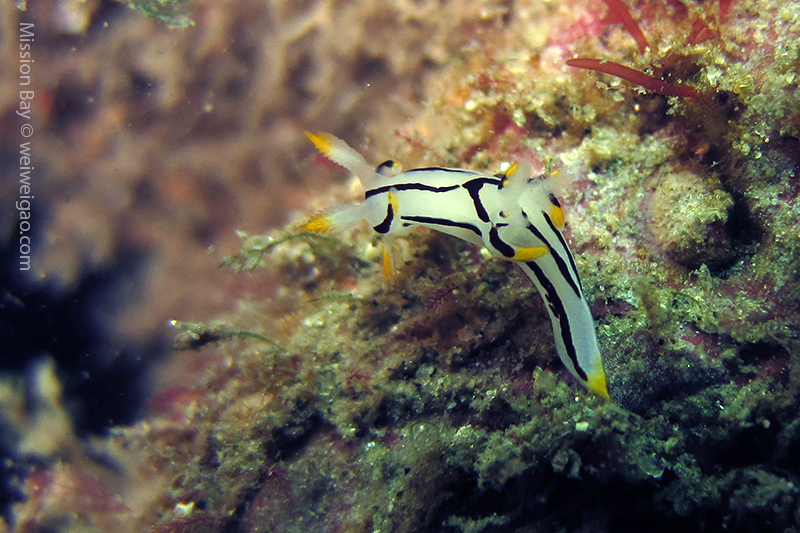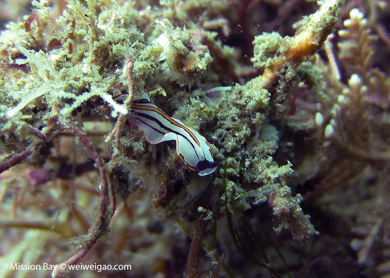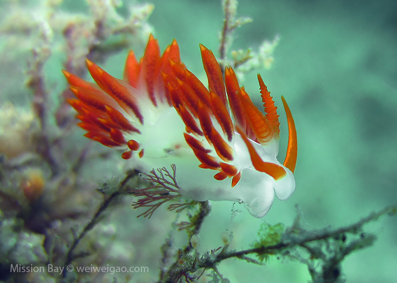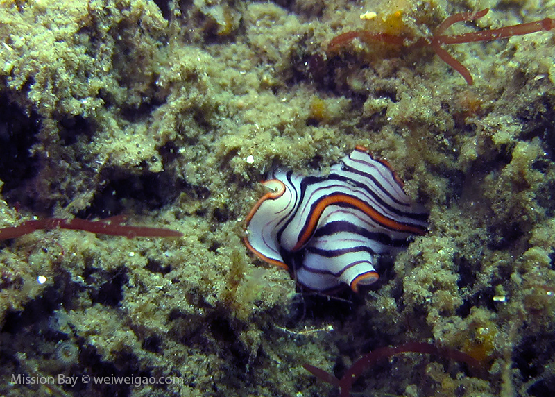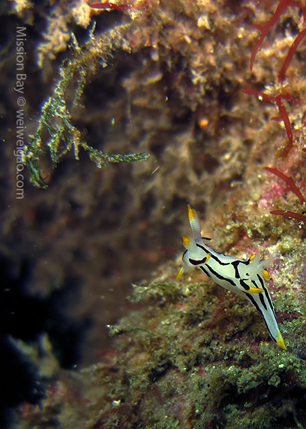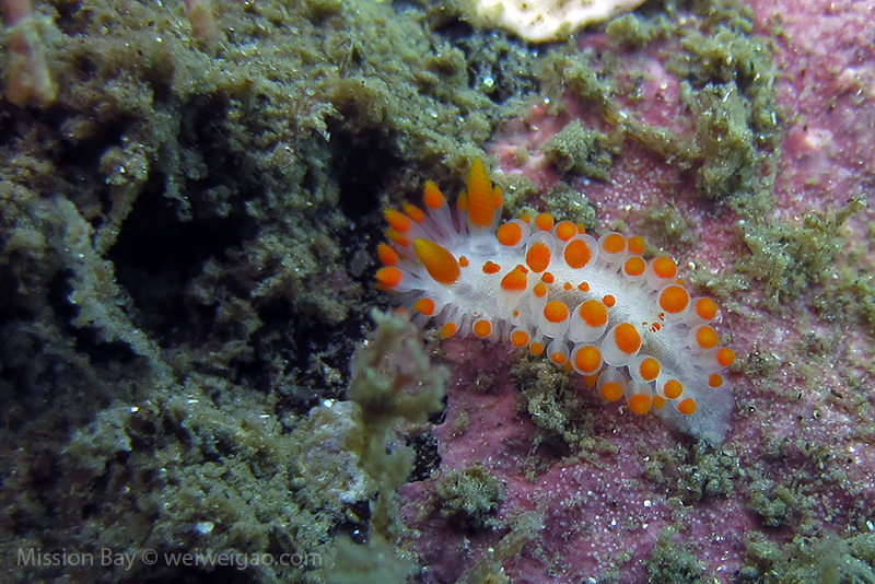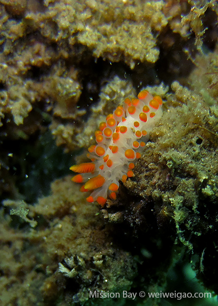 We followed the boulders and swam out toward the jetty. The water was no deeper than 25 feet but felt pretty cold (~55F). Although it was a bit murky, there was no surge or any current. The dive was uneventful at the beginning. Slowly, we passed the eel grass and came across quite a few Limbaugh’s Cadlina on one boulder. Then we started to see more and more nudibranchs. Each species of nudibranchs occupies a section of the boulders. If one is spotted, most likely there are a few around. We also came across two different kinds of polyclad flatworms. Most critters here are super small and it requires sharp eyes, concentration, and patience to find them. Here are some cool creatures: