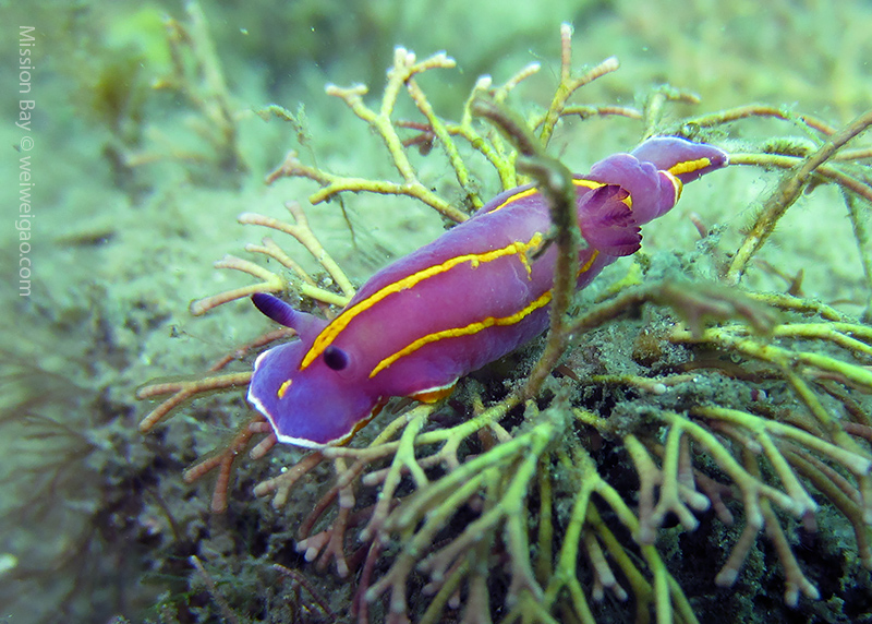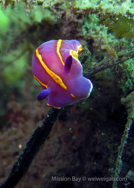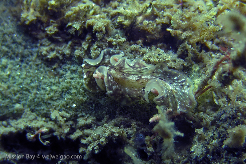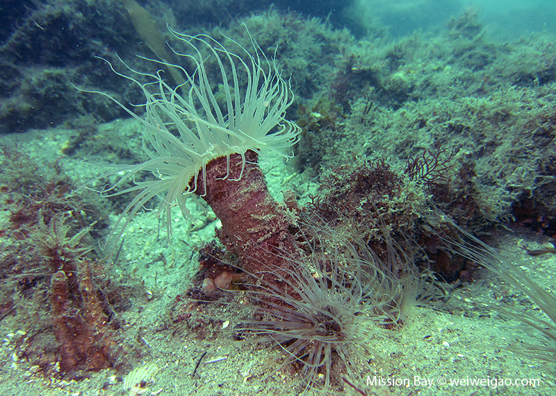 To avoid the weekend crowd, Mike and I headed out to Mission Bay today. I was quite excited because it’s been a while since last time I dove here. In the early morning, the small beach at Mission Point was quiet. The bay was lake-like.
