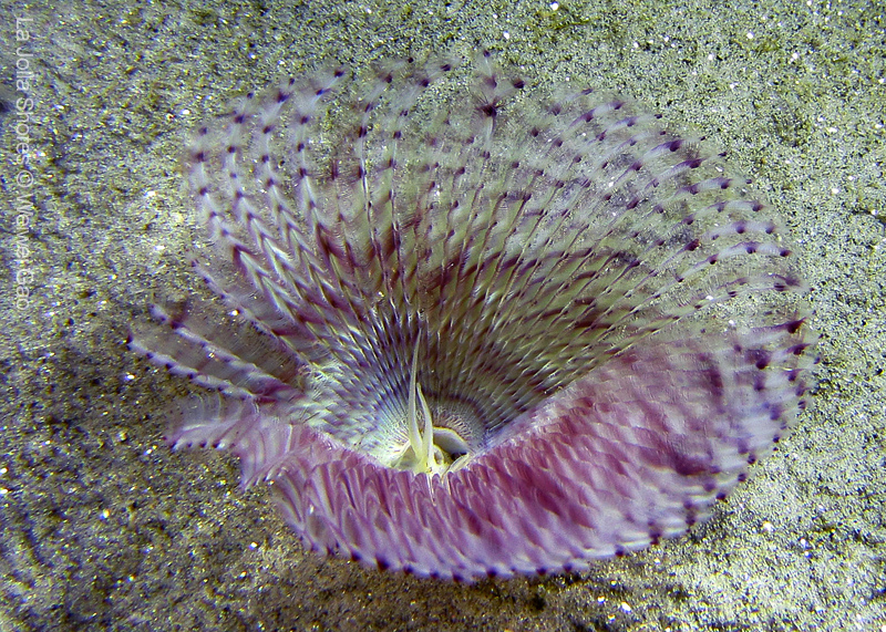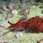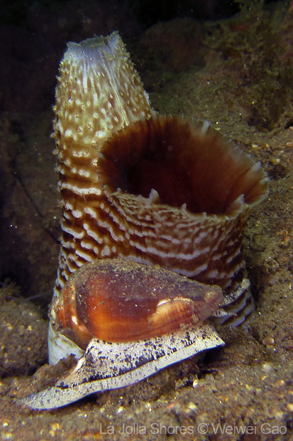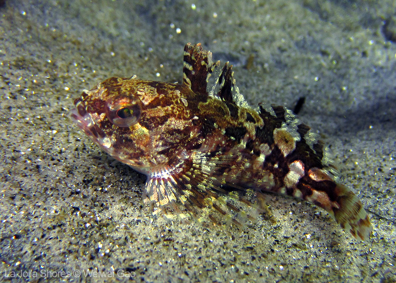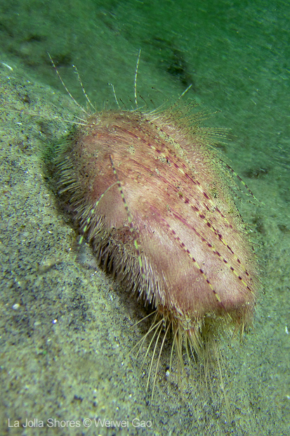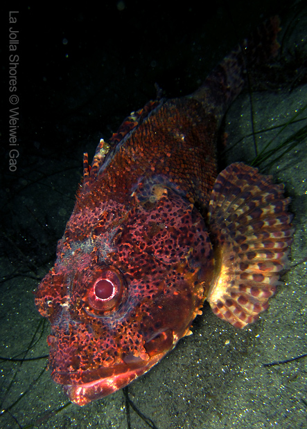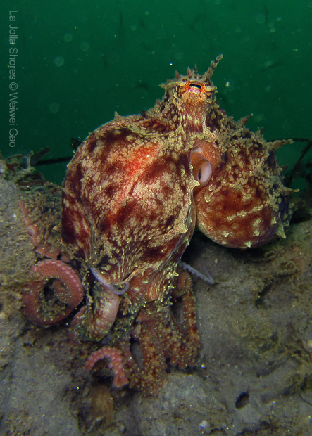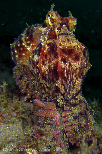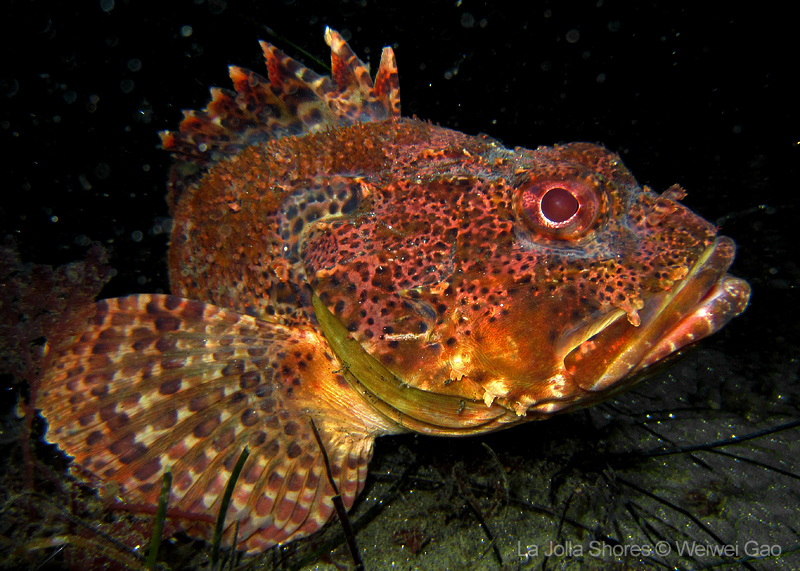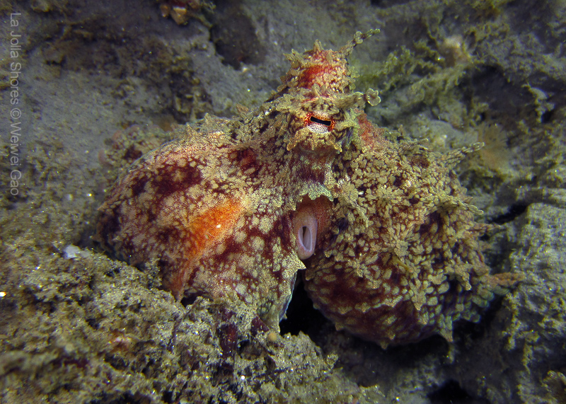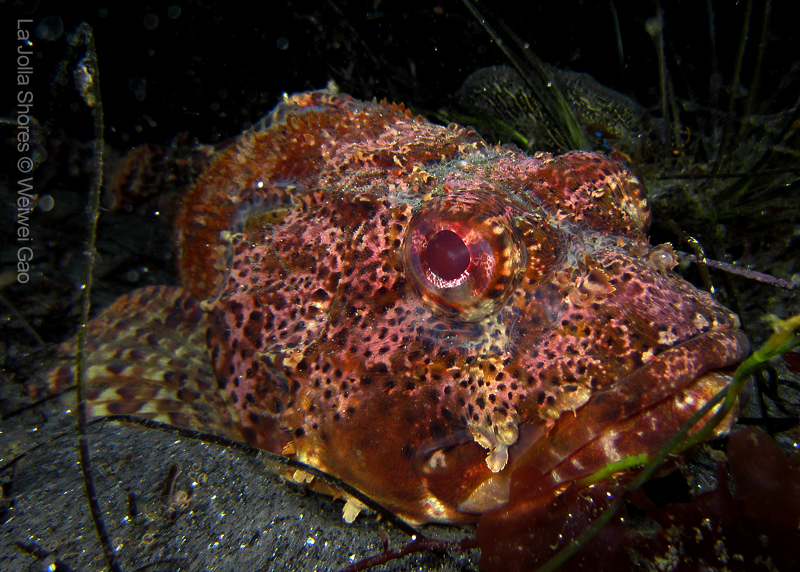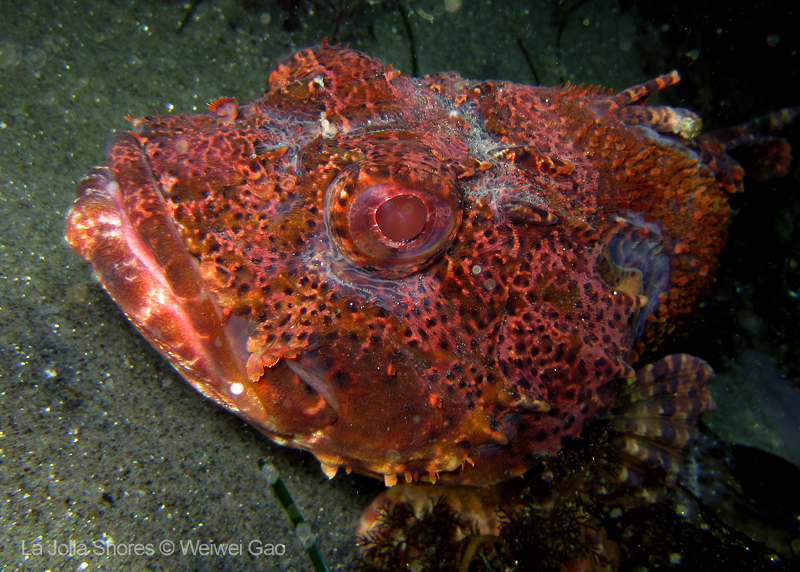 For the second dive, we decided to visit the Vallecitos Point, despite a big pack of students heading to the same direction. Looking far, the visibility was indeed poor; but looking close, what an amazing show! The white sea urchin was running fast. The navanax was patrolling. A group of giant sheep crabs, instead of being shy, jumped really high to snap me. On the canyon wall, sea lemons were all paired up and having a good time to themselves. Above the canyon, a giant halibut appeared but quickly took off before I could get my camera ready.