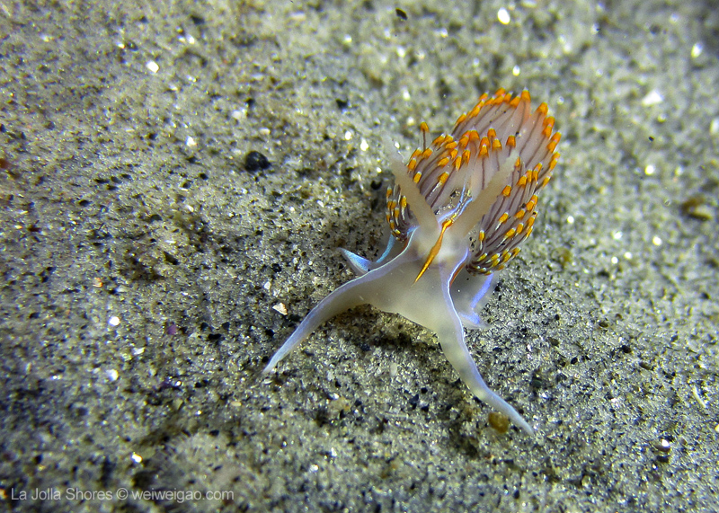 The grass patch was teemed with Hermissenda crassicornis. Here is a little short video of one crawling on the sand.