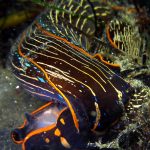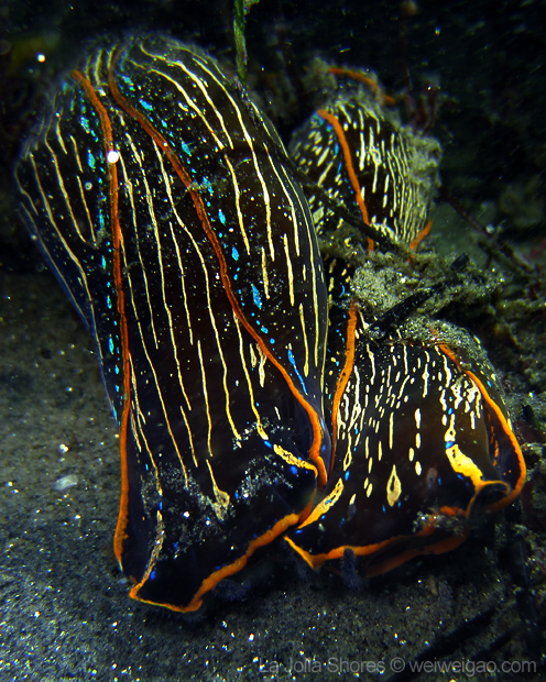 Huge and powerful waves in the morning but became much quiet later during the day. At the sandy flat, the visibility was 30 ft + with beautiful emerald water. However, at the canyon and the crap patch, the vis dropped significantly to about 10 ft. My computer showed 51F at 85 ft. Despite the poor vis, looking close within that 10 ft water, it was so clear and so much was going on.