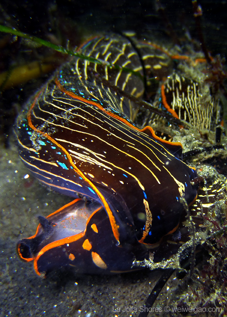 I was participating Power Scuba newbie-vet event. My buddy and I worked together to enter the water, and we were not bothered by the poor viz on the far. Instead, we found so many cool critters in arms reach- horn sharks, bright orange sea anemones, all kinds of nudies. I spent some time at the patch with this sea hare.
