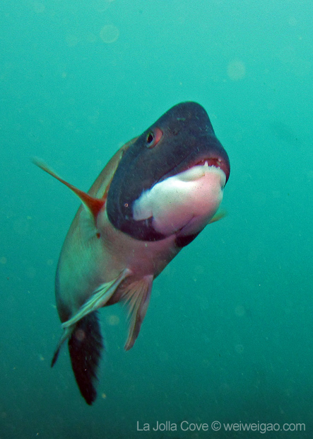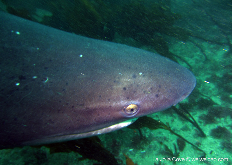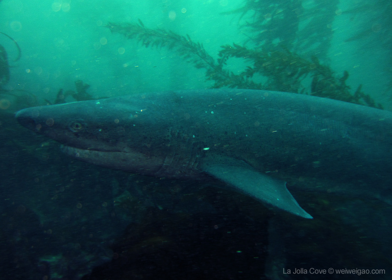 Although I have seen tons of videos and pictures of sevengills, a face-to-face encounter was a heart pounding experience. Unlike other kind of sharks, sevengills have a wide and flat face, which give an affable appearance in contrast to other sharks. Their tails extend long and curl out at the tip, making them especially elegant swimmers. But more importantly, they are not afraid of divers. They swim by and look at me, as if saying ‘what are you doing here’. I wish the visibility was better and the surge smaller. But what an amazing experience to swim which these gorgeous creatures.