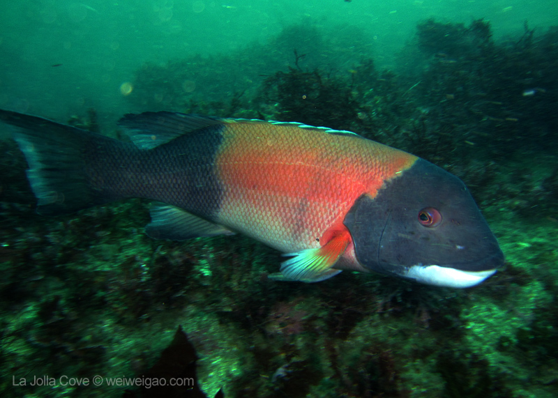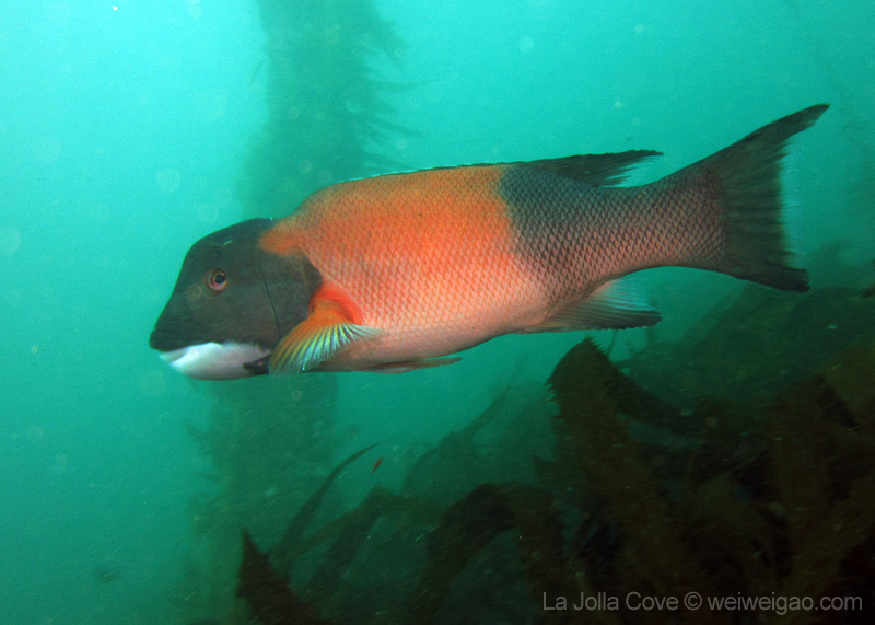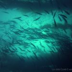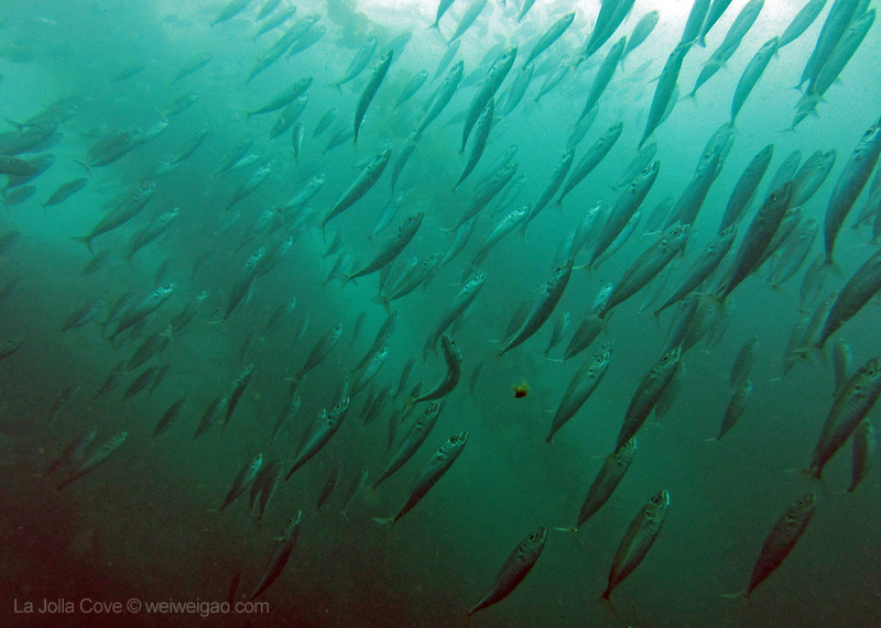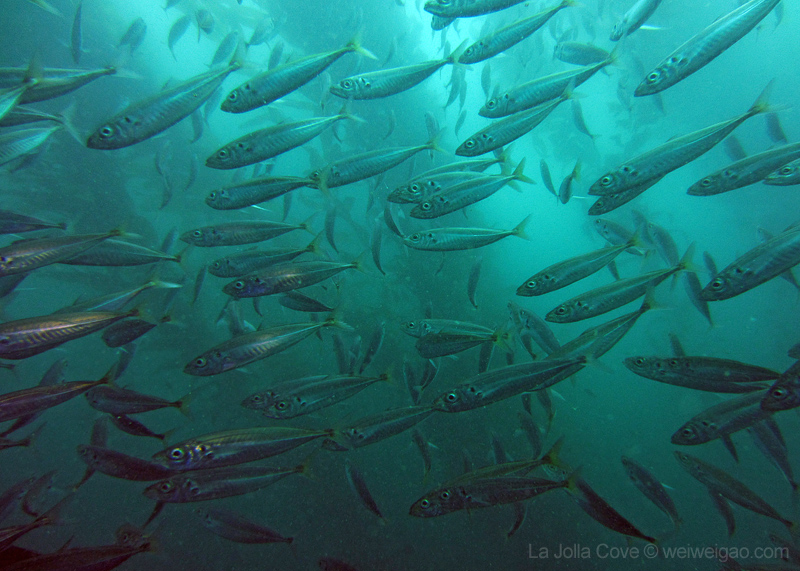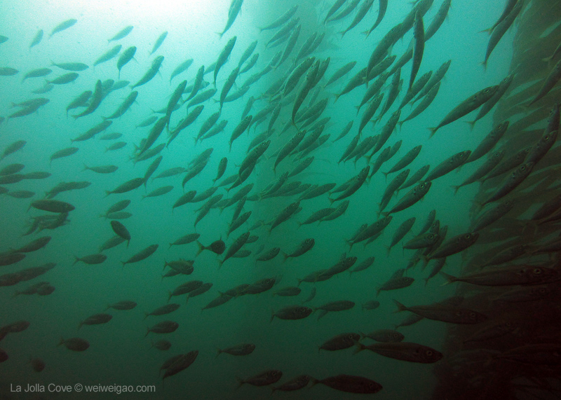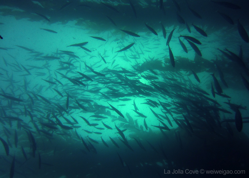 Under the kelp, the bait fish gather. They twist and turn, like birds dancing in the sky. I thoroughly enjoyed watching their magnificent performance.