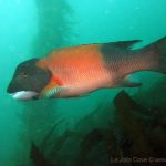 April has been ‘sevengill month’ – crops of sevengills are seen and reported at the cove. News letters and facebook pages are filled with sevengill videos or pictures. No doubt this is the time to see them. Steve offered me an opportunity to dive the cove from his boat, and he also let me drive the boat for a while while we headed north along the coast. Both added more excitement to our mini shark trip. The sea was completely flat. In a few minutes, we anchored the boat a little bit south to the buoy A.