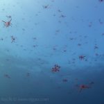Headed out to Point Loma with Steve and Shaun. It’s a beautiful day out at the sea. During the surface interval we saw three whale in a group swimming together toward the south. The highlight was the tuna crab in the water column. Here is what I wrote.