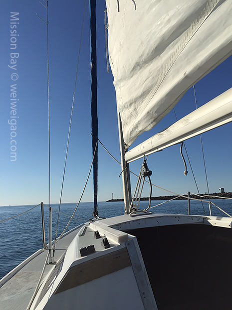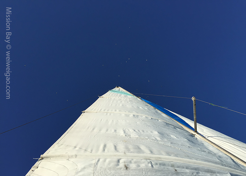 This is the last day of 2014. Headed out with Yuhua and Tim to Mission Bay. It was cold and stormy in the morning but the afternoon was sunny and quiet. In fact, it was so quiet that we couldn’t sail even out the bay on the open ocean. But what a great way to say good bye to 2014.