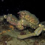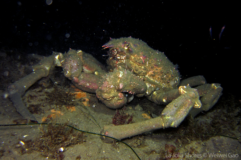 We decided to head north the Vellocitos Point. Shortly after we dropped off, we spotted a few nudies on the grass. We didn’t spend too much time there and headed to the canyon directly. The visibility at the canyon was very good. Along the wall, there were many ship crabs. They looked very clumsy crawling on the wall. Here’s one of them.