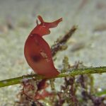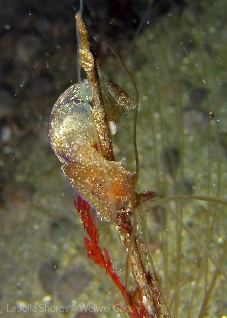 Another exciting discovery is a Haminoea vesicula. This is my first sighting. When I saw it crawling on a grass, I didn’t know what it was and thought it might be a navanax. It was really cool!