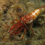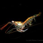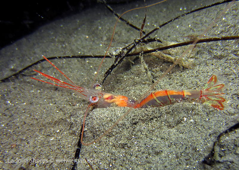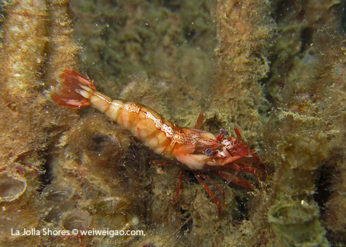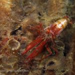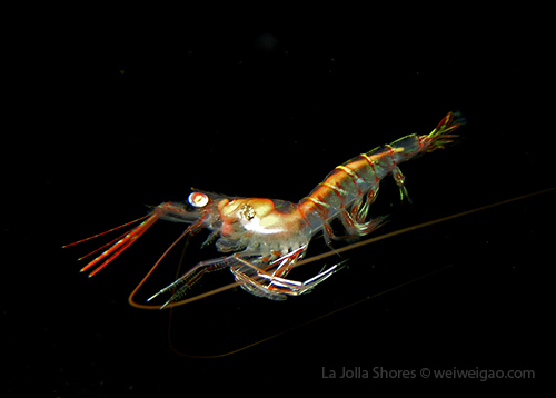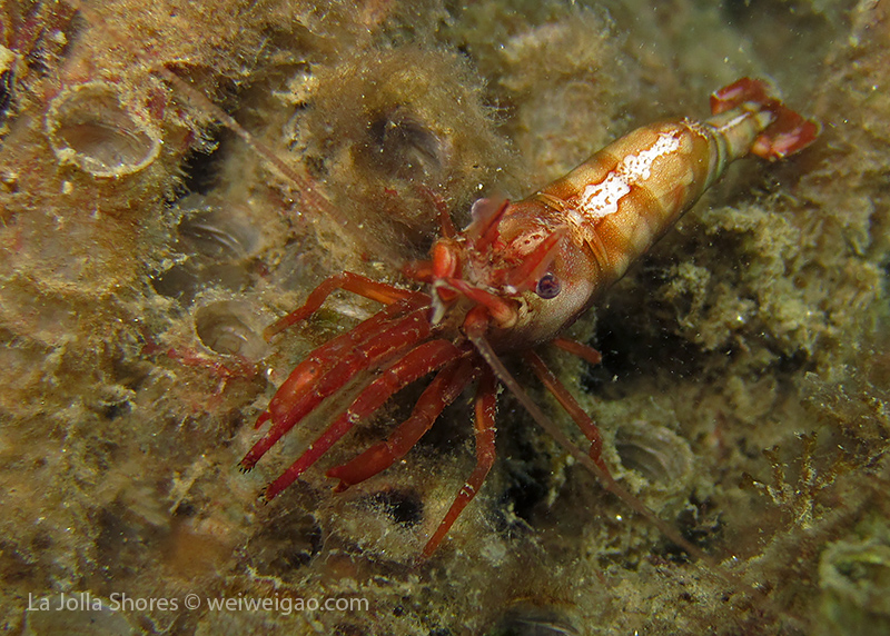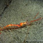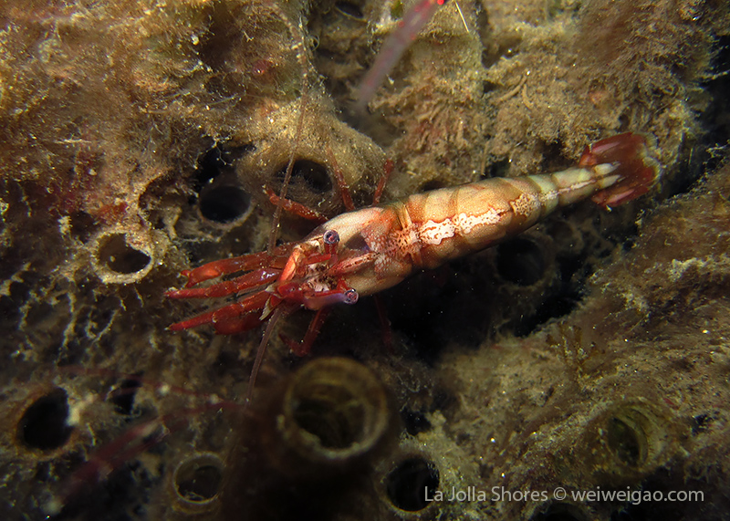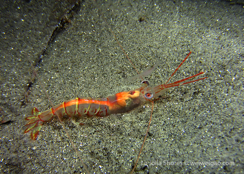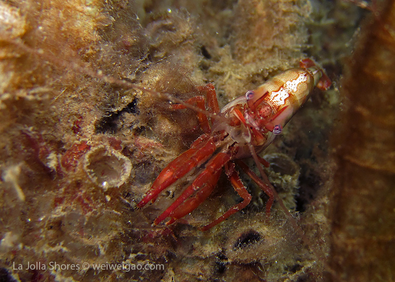 I have to look at the pictures to remember what happened to that dive. I remember the condition was very nice – minimum surf and good visibility. I started from a bit north of the V point – although I planned to go a bit more north – and swam toward the south. A quick look only revealed common creatures. But I looked carefully and noticed different kinds of shrimps. The first kind had a transparent body. It’s internal organs and structures could be easily seen.