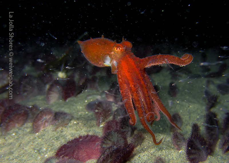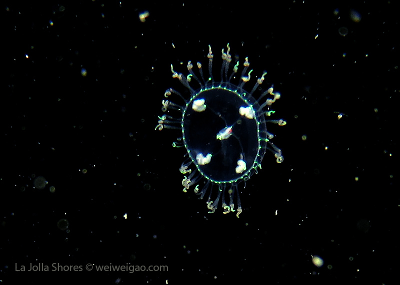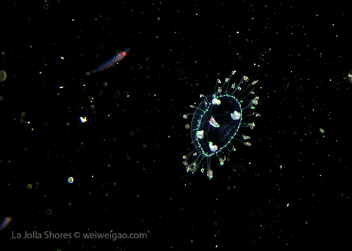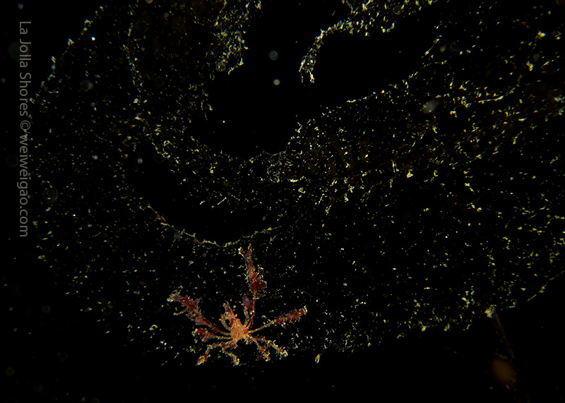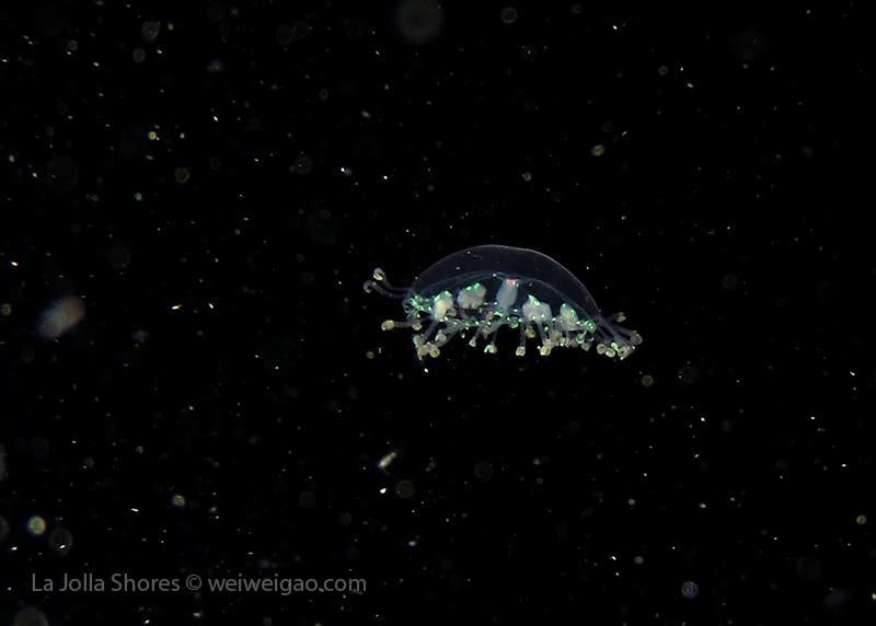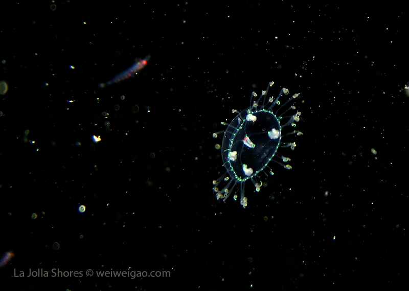 But another amazing finding was a tiny jellyfish. It was so small and primarily transparent that I saw it when my light was unintentionally held at a weird angle.