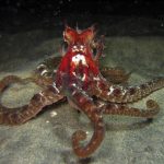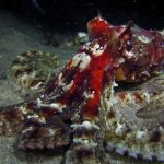 While trying to escape from me, the octopus seemed to grabbing the krill along its way.