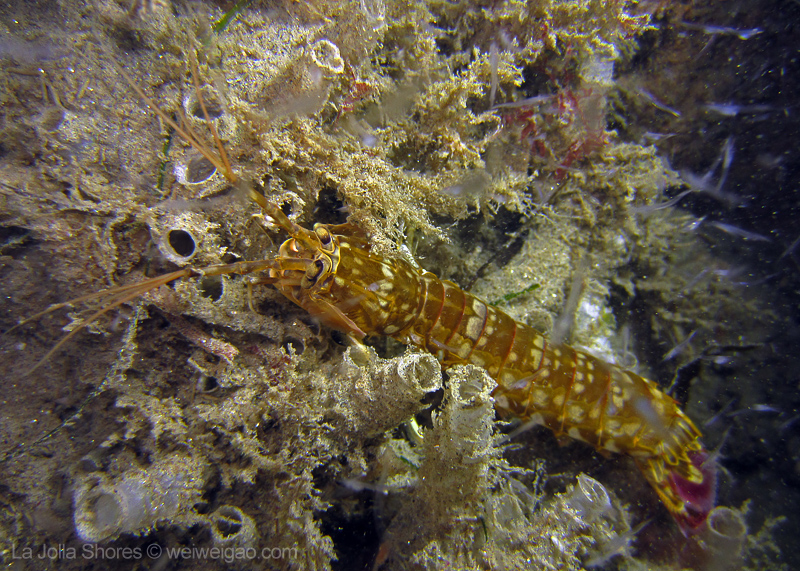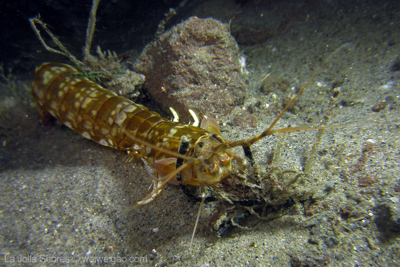 Not long after I dropped down the canyon wall, I came across this strange looking shrimp. Despite the many dives spent at the shore, I had never seen a mantis shrimp. Regardless its official name, the little guy attracted me by its elegant steps.