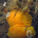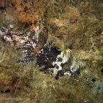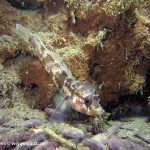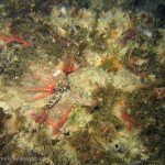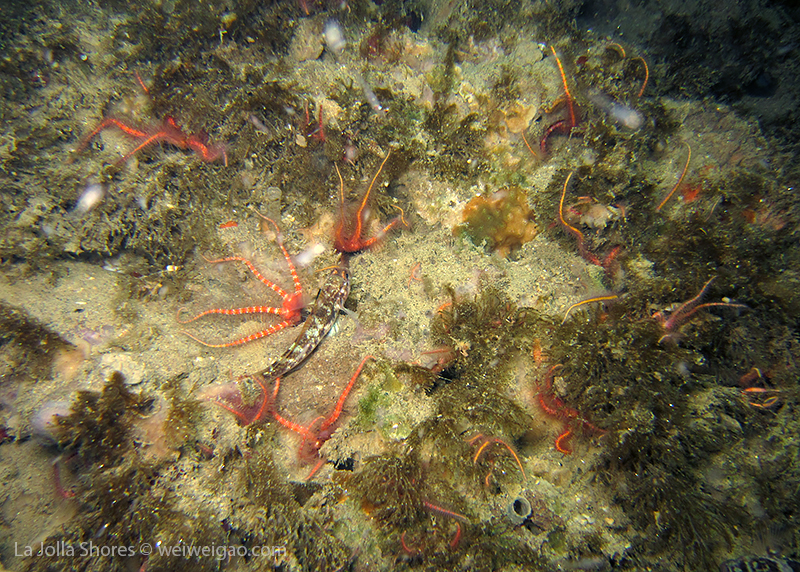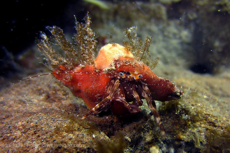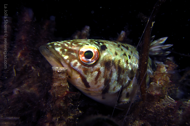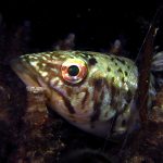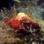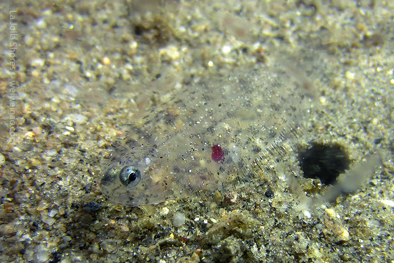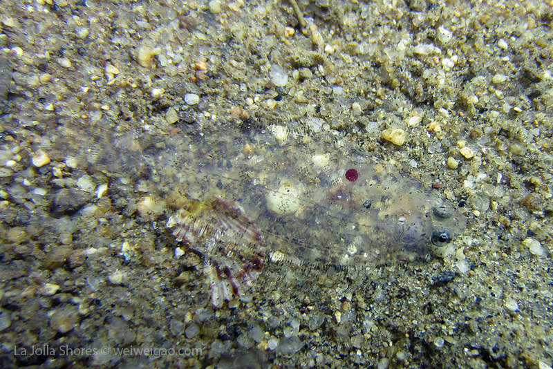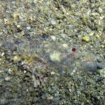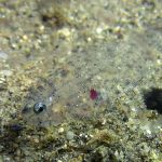 A few really cool things I came across during today’s night dive. First, a really cool fish larvae with a nearly transparent body that I can see through. I can even see its the other eye and the sand grains on the bottom. I guess the red dot is the heart.
