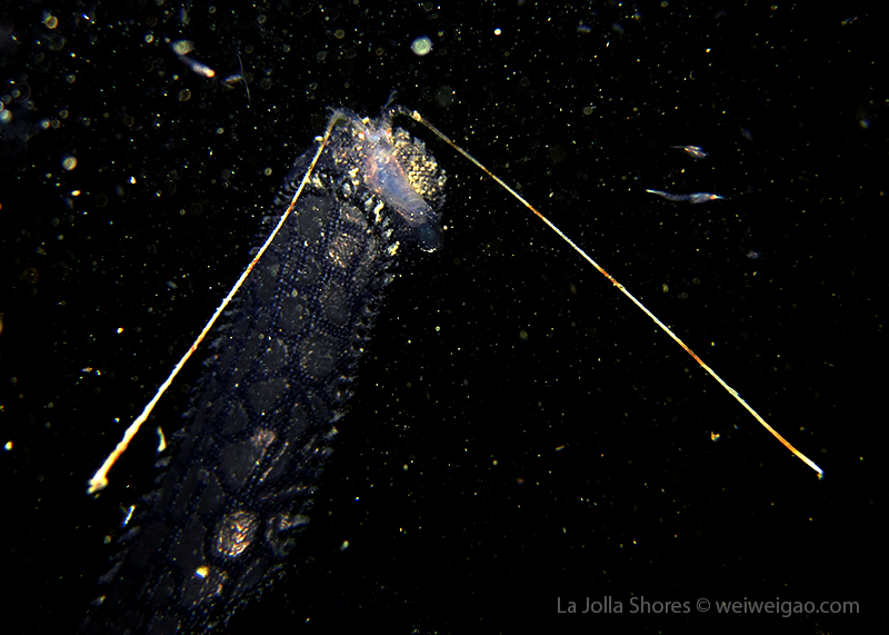 Second, a shrimp also with a transparent body and a pair of super long antennas.