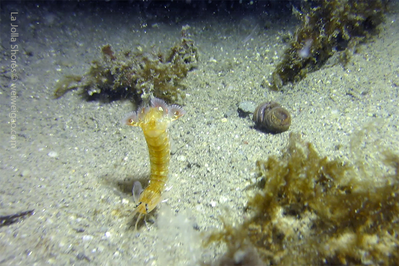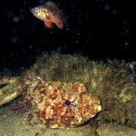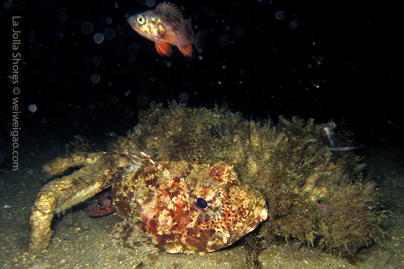 I headed north to the Vallecitos Point. The highlight of the dive was a huge scorpion fish that curled around a small tube patch. That was a good nest. I believe it was the same fish last night on the canyon wall.