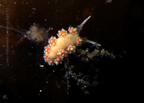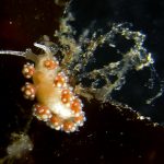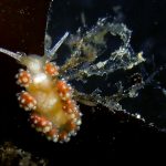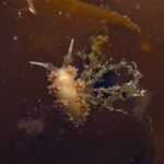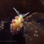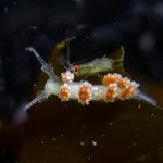 Next to the Dendronotus frondosus, I noticed a Doto amyra, another kind of nudibranch. So far, I only heard of them but never saw one. I know they are small, but after seeing them I realized that they were really small, just about the size a grain of rice.