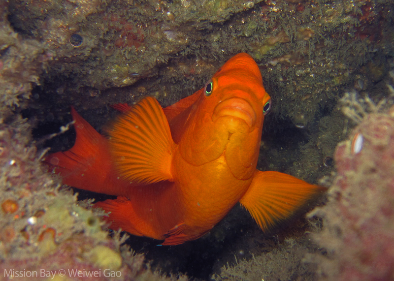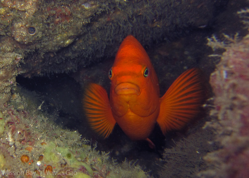 This morning Tiffany joined me and we headed out to Mission Point for a morning dive, hoping to see more nudibranchs. It was sunrise when we got to the Mission Point and the bay was beautiful. The park was very quiet with a few people doing morning exercise. We geared up quickly and swam toward the boulders.