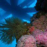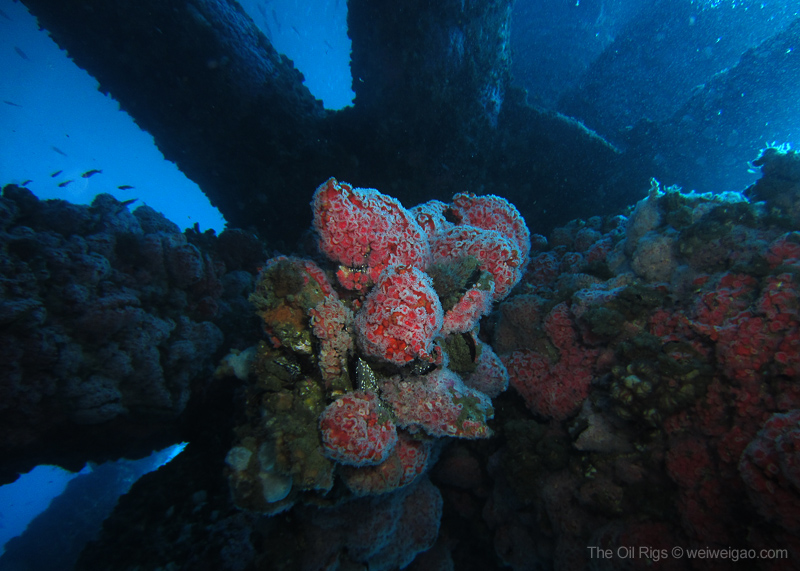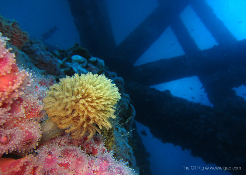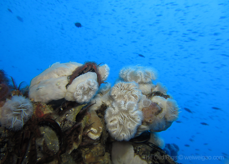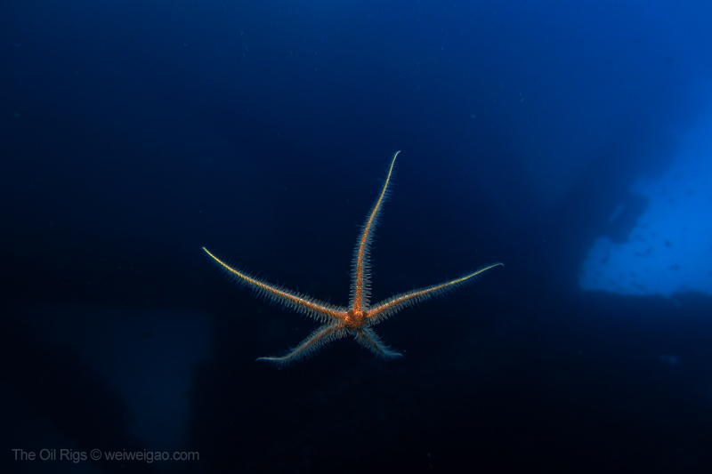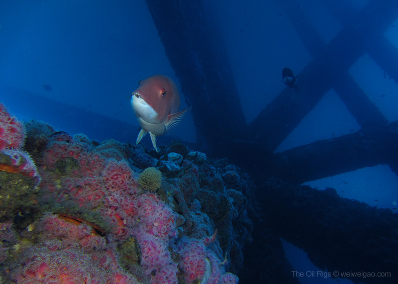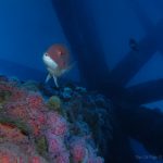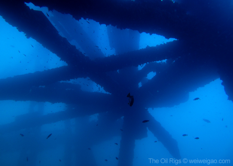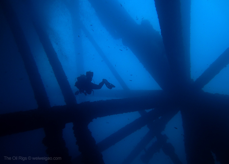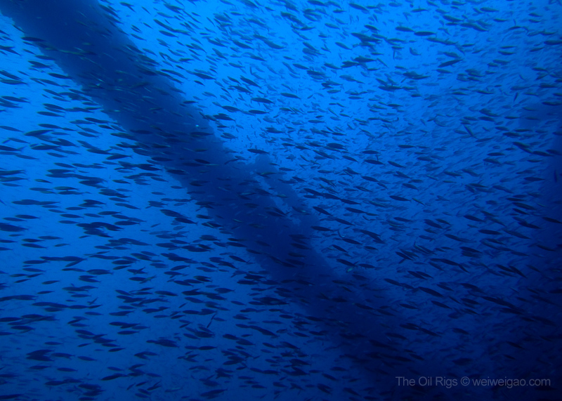The time at the rigs went by fast. Soon it was time to go. As I swam to the ladder, a beam of light pierced through the dark blue from the deep, as if reflected from a piece of sterling silver – a mola mola, accompanied by a school of fish, just swam by. Suddenly, the humming noise of the rig muted and the surge at the surface dissipated – the world became quiet. I froze, watching its passage from the far and could only wish to join the journey. Seemingly motionless, the mola mola slowly drifted away, leaving me a deep blue ocean to contemplate.