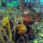 On dive 2 we dove the north finger and , and I dropped down to the channel at 100 ft and spotted a Hudsons horned dorid (Acanthodoris hudsoni ) that needed my camera’s attention .I haven’t seen one of these in a couple years and it was worth fighting the current to snap some pic’s .I headed over to a crevasse (The Y crevasse) , wedged myself in and just watched all the life.