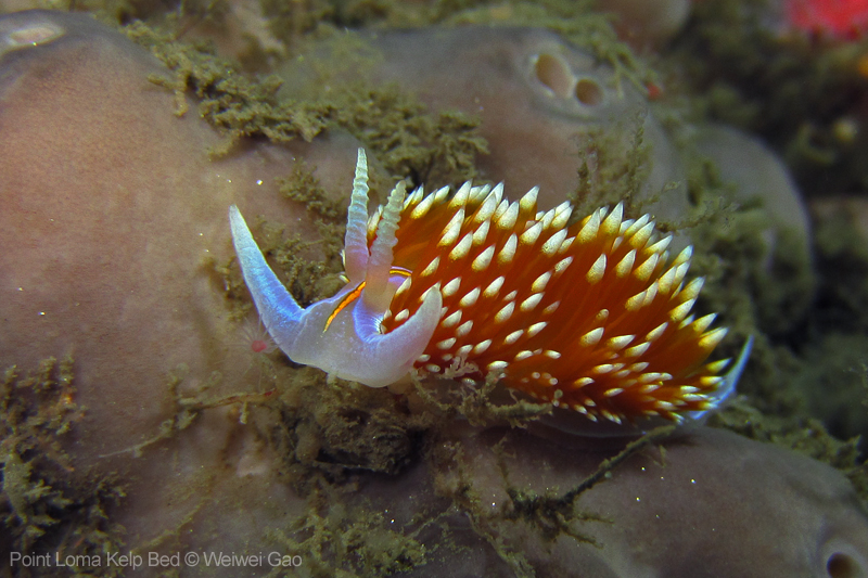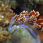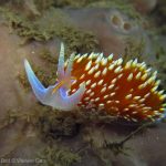 The dive site we got to was Dino Head. I went before and it was a beautiful site. The condition overall was pretty good. The sea was calm and there was not much current. The visibility was good but was super. As usual I saw a lot of nudibranchs. Here are a few pictures of Hermissenda crassicornis.
