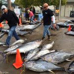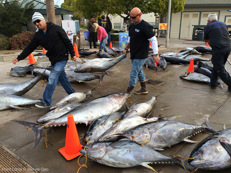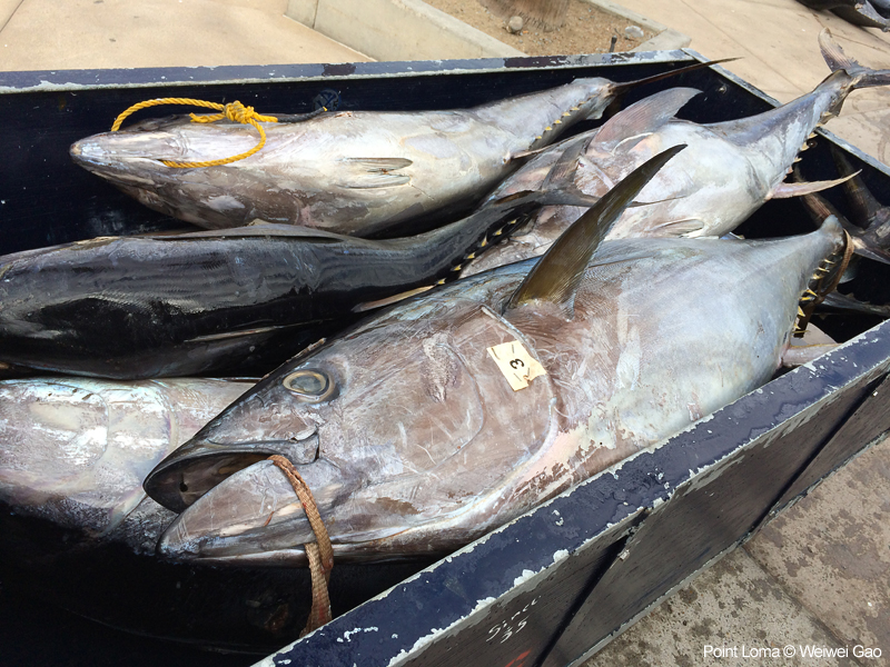 I came across a fishing boat just coming back from a 18-day trip. It was my first time to see the unloading a full load of fish. It was really cool. Point Loma in a overcast morning was pretty. Here are a set of pictures.