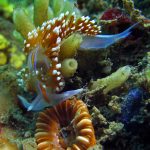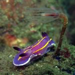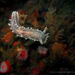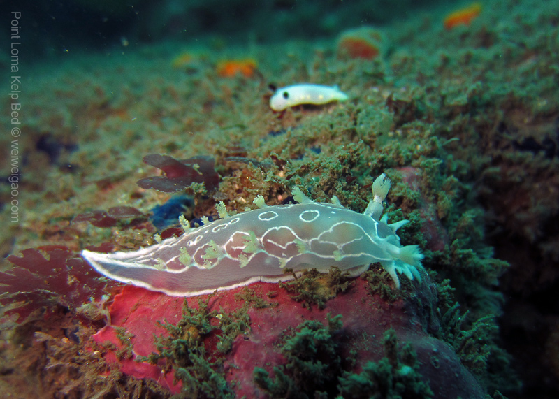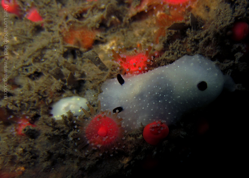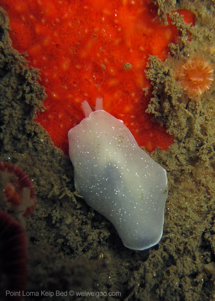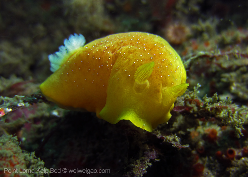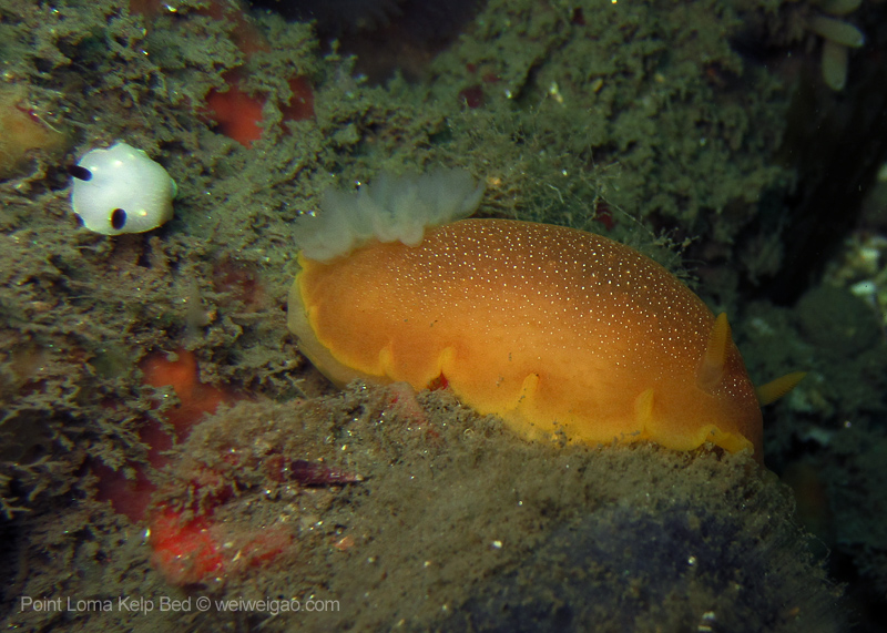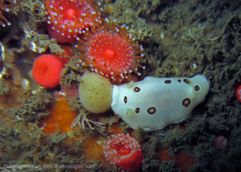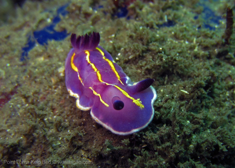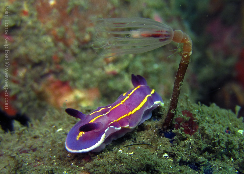 Today I headed out with Steve again to the Camel Head. David and Sean were also on board. It was a beautiful day with bright sunshine and flat sea. The first site Steve picked was Camel Head. It has a huge wall and amazing kelp. The visibility as amazing seen from the surface but was a bit milky near the bottom. As usual, Point Loma was beautiful with striking colors. For the second dive, we moved another site called Lazy Dazy. It was a nudibranch wonderland. The highlight of the dive was to get many opportunities to shoot Tritonia festiva. It was gorgeous!