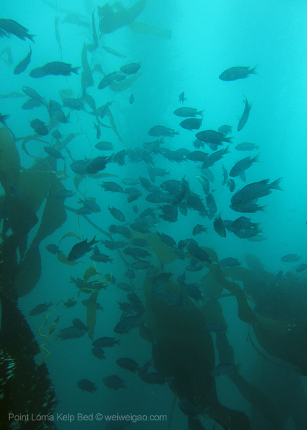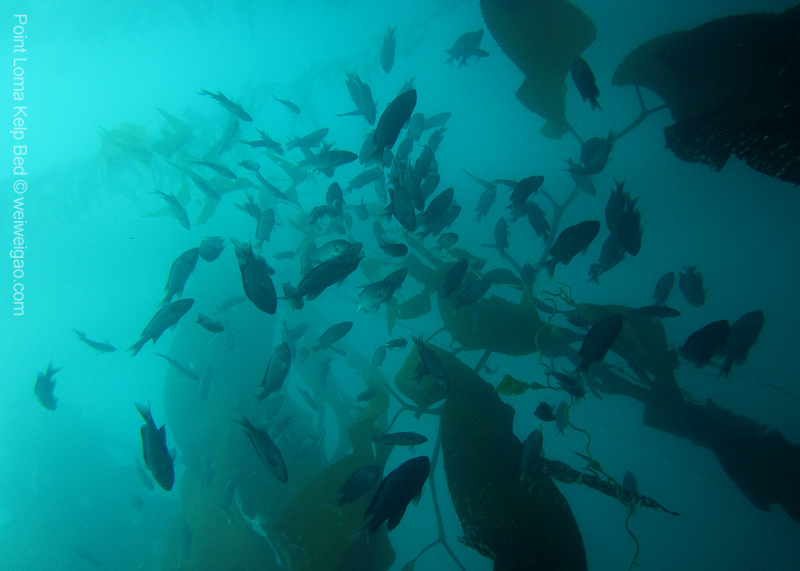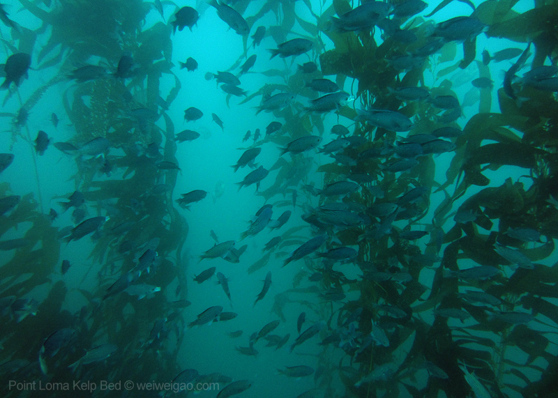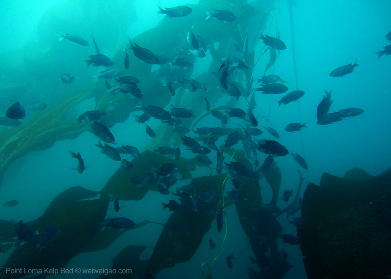 During the safety stop, got some really cool shots of the kelp forestry and the fish schools.