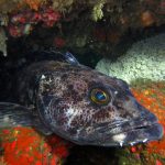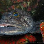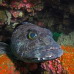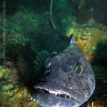 The majority part of my dive was spent with a really cool ling cod. I was attracted to it because of its large size and a shark-like appearance. The fish just laid eggs and it was trying to protect them. So we got really lucky to get close. At beginning, it was nervous and swam around us, trying to lead us away from the eggs. Soon it probably realized that we were doing no harm and it became quiet.