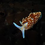Although I didn’t swim far and stayed on the same pinnacle, that didn’t mean I only saw white dendronotid. In fact, while I was focused on white dendronotid, I spotted more nudibranch in the close proximity. The more I paid attention, the more I saw, such as this little nudibranch: