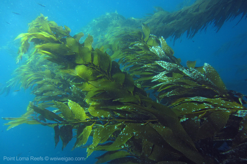 Halfway through the dive the kelp started to lay down and actually got streaming straight off the top of the cliff heading west at 75 feet deep!