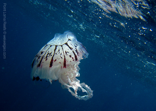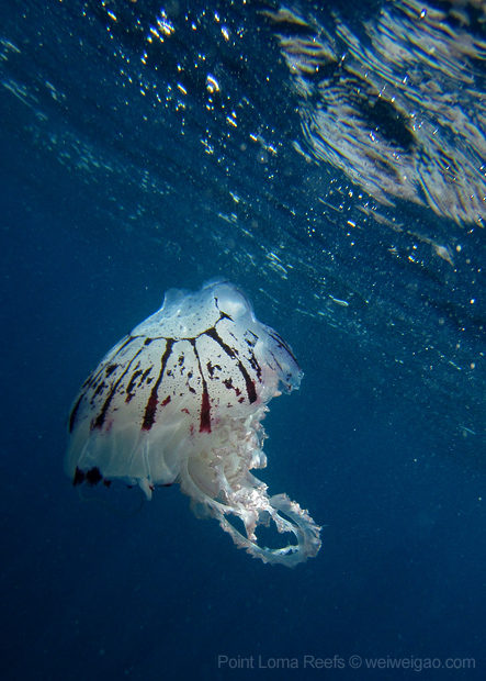 On the way back, Steve spotted a purple-stripe jelly and I jumped into the water to get a few pictures. This was my first sighting of this beautiful creature.