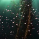 We dropped off the anchor on the second site. There was a big layer of dirty water on the bottom. Above that the visibility was decent. But it was surgy. I stayed high above the dirt layer and had lots of fun shooting the fish in the kelp.