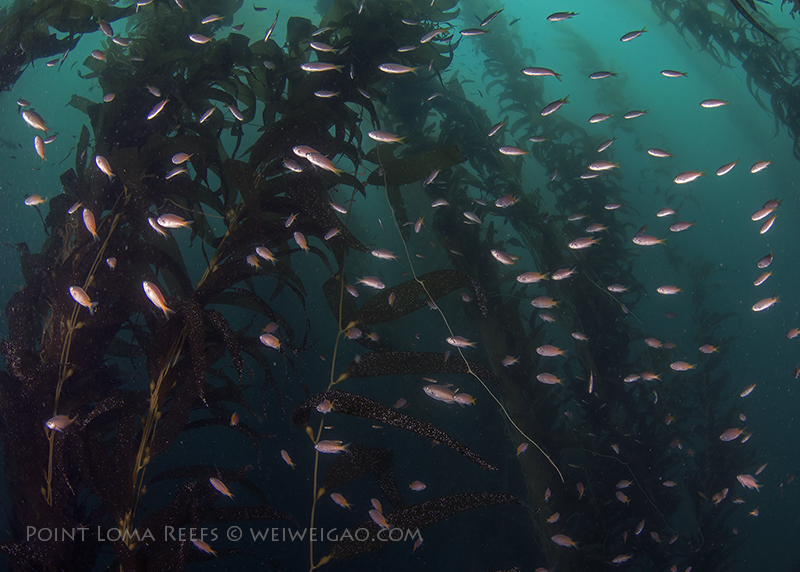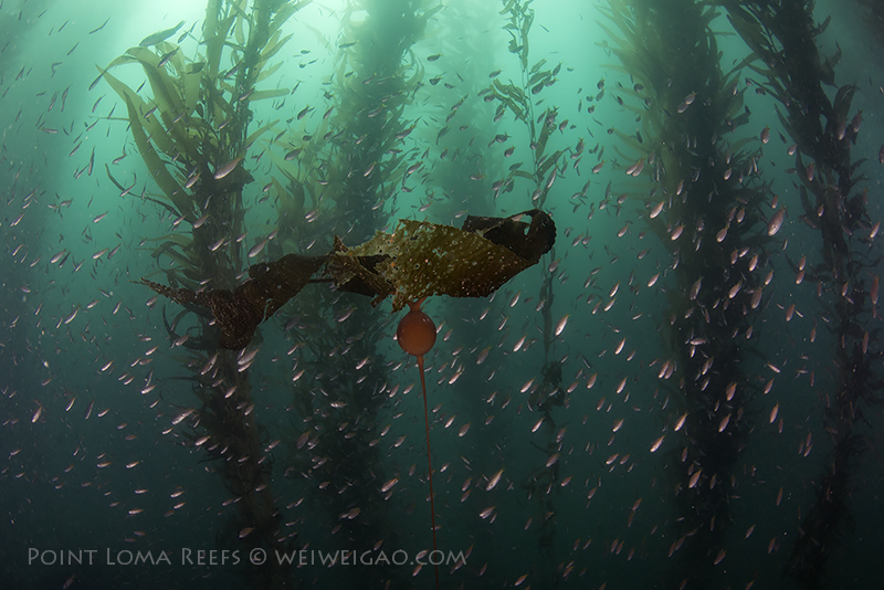 Wow, it’s already mid October and another heat wave kicked in. Headed out with Steve and Gayle. The forecast showed big swell. We could see huge wave at Sunset Cliff but offshore it was relatively calm. We dropped the anchor at T-Rex, a site that had a lot of reef clusters. The water looked so green on the surface. When I dropped down, there were tons of particulates in the water column. The visibility turned even worse when I got to the bottom. In fact, for a few seconds, it was dropped so bad that I was not even sure whether I should abort the dive. And it was super surgy – probably the worst condition I did with Steve.