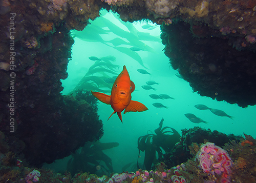 I was just cruising in and out of the kelp, following the fish, and enjoying the beautiful scenery.