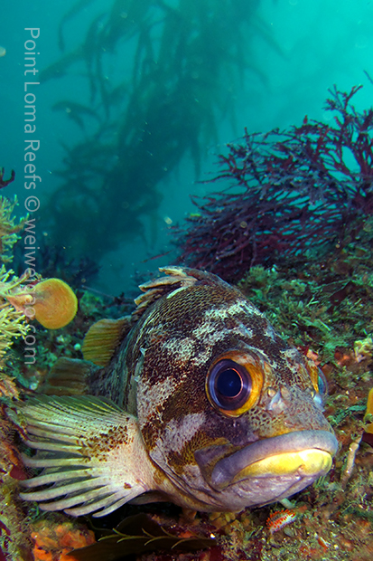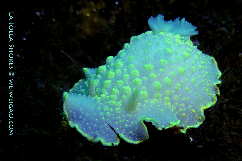 Today I made two dives at Point Loma aboard Dive Animal’s Wellcraft. The first dive site we went to called ‘Grand Canyon’. It was in south Point Loma, a region more prone to current. Tim was driving the boat and he timed the tide very well so the condition was really good. In the second dive, we went to ‘Three Fingers’, a shallower reef. Less and less I focus on nudibranchs. The only one I spent sometime with was this big yellow edged cadlina.