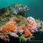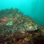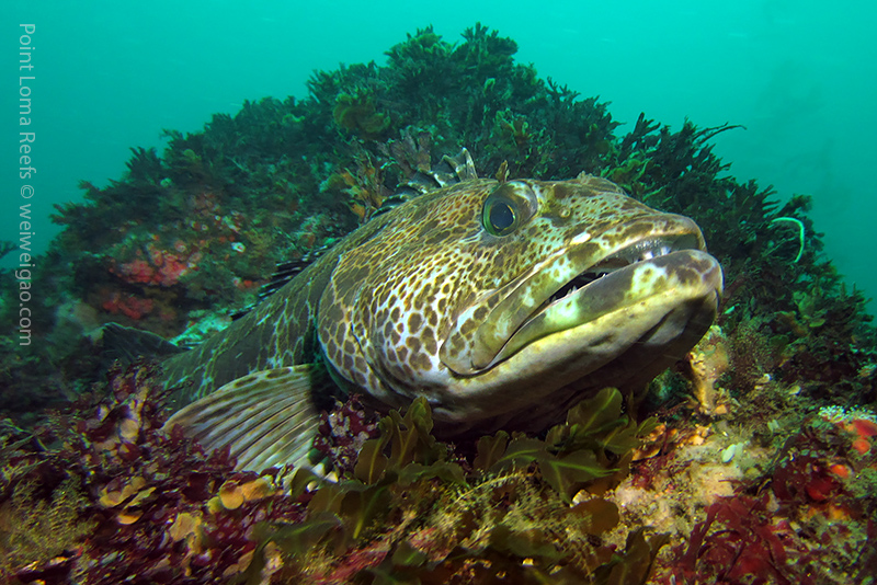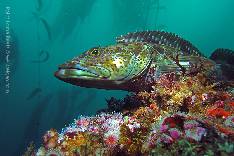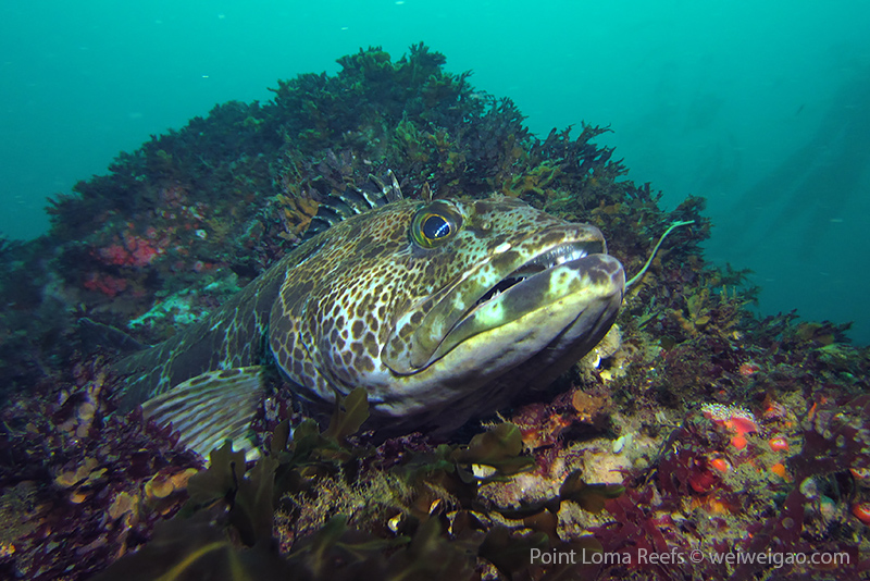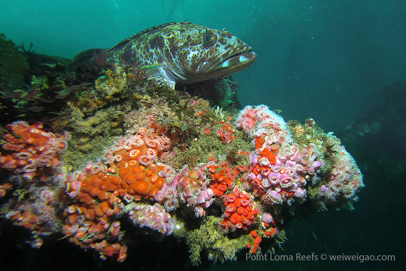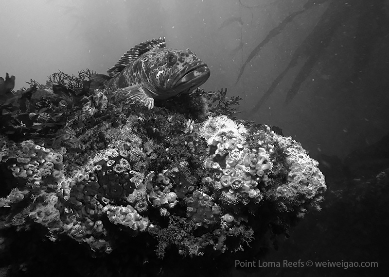 The Scripps Canyon diving was canceled so I headed out with Steve to Point Loma and did a few dives. In one of our dives, I saw quite a few lingcods. Big in size, they were sitting quietly on top of the pinnacles, making beautiful pictures. Most of the time, this kind of fish is shy; but this time they let me get close to take pictures. When they swim away, a smaller one will follow. This made me wonder if another mating season was coming. Lingcod is a beautiful fish. They have a pointing face witha big powerful jaw. The body is lean with a spiky dorsal fin. But they earn their respect with their eyes – always looking far as if they are carrying a serious mission.