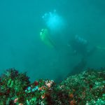 During dive #2 Mike helped me move a lobster trap to the top of the wall so the line will reach the surface.