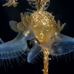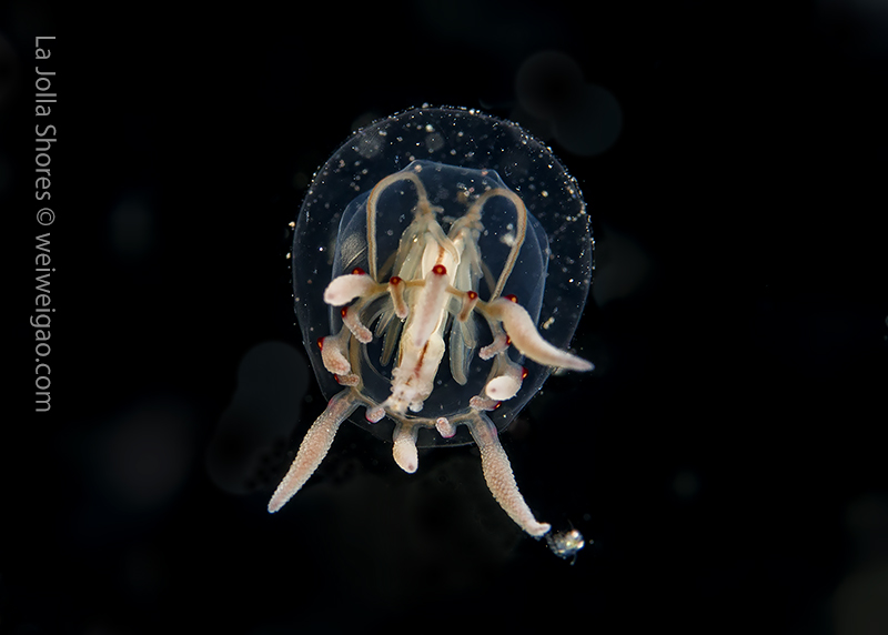 I headed to the shores while the storm was looming. The beach was quiet and the water flat. The condition underwater was amazing. I dropped off at the main wall and swam to the north. Near the main draw, I spotted a tiny jellyfish.