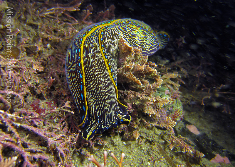 I also took time and shot a few sequences of navanax crawling. For most of the nudibranchs, if you watch them carefully, they actually move very fast. It seemed this navanax was feeding things on the ground.