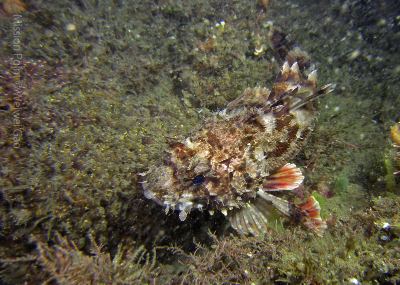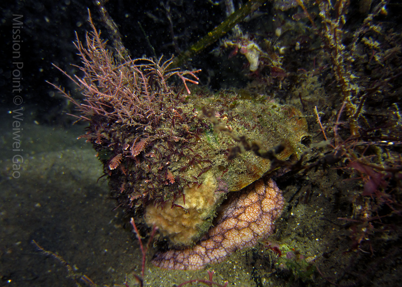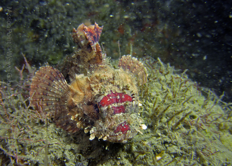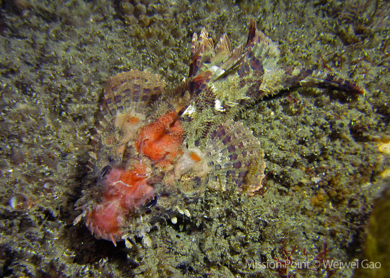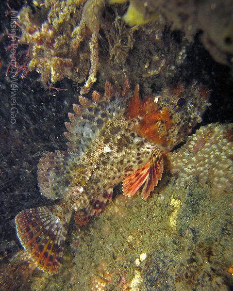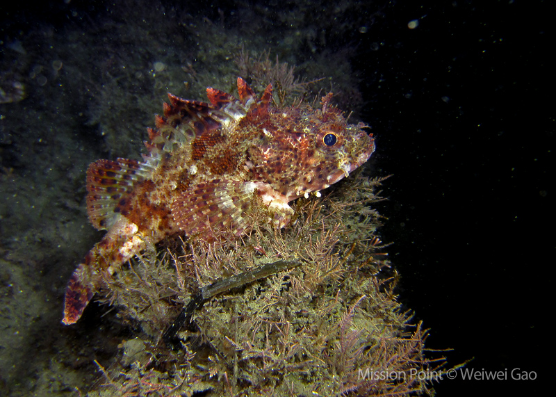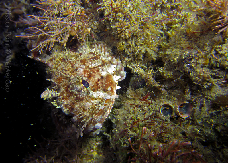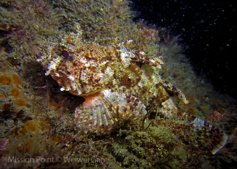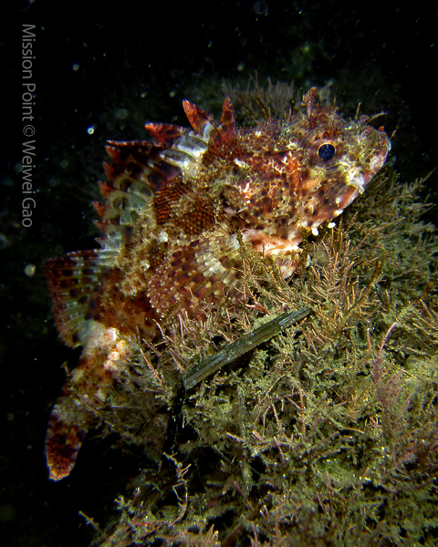 The water was shallow and the current was minimum. I followed the rock toward the channel. I was hoping to see lots of nudibranchs; however, besides a few navanax I did not see any other nudies. To my surprise, there were lots of scorpionfish. They were everywhere. I felt as if the whole dive was all about scorpionfish.