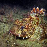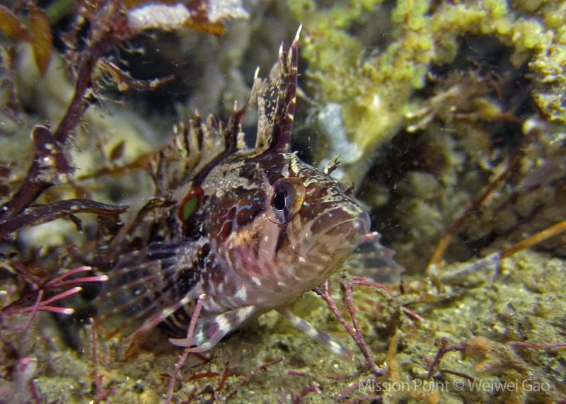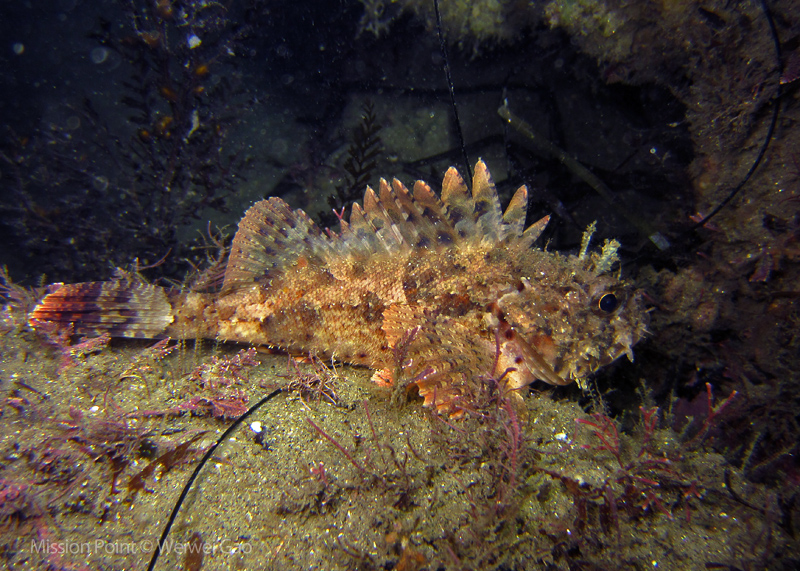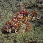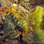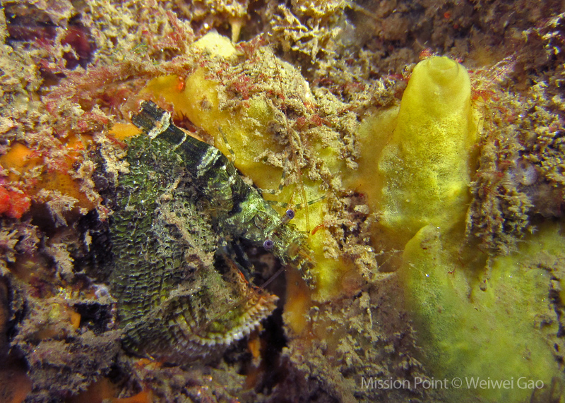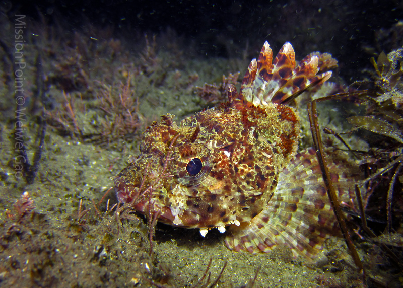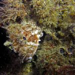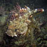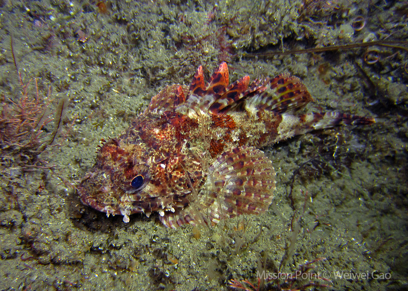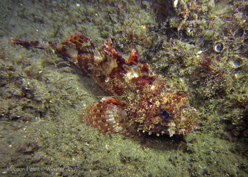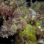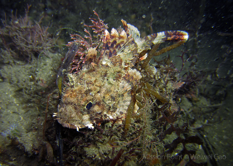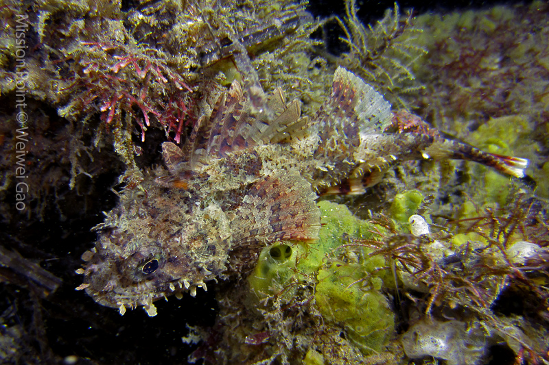 The water was shallow and the current was minimum. I followed the rock toward the channel. I was hoping to see lots of nudibranchs; however, besides a few navanax I did not see any other nudies. To my surprise, there were lots of scorpionfish. They were everywhere. I felt as if the whole dive was all about scorpionfish.