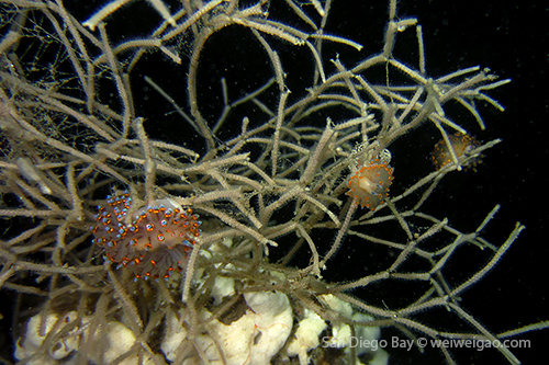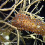 Another interesting encounter was a group of Janolus, hanging on some algae with a strange looking.