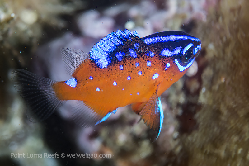 Two interesting subjects showed up. One is a juvenile garibaldi, which was both skittish and curious at the same time.