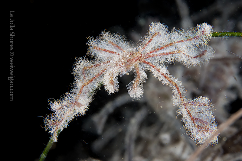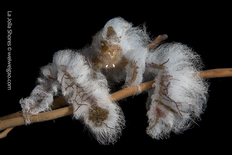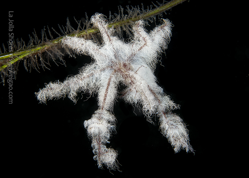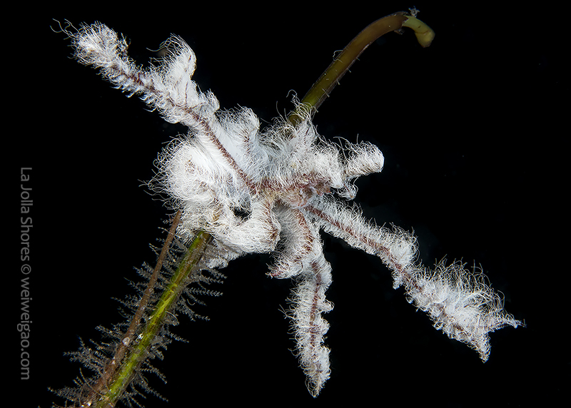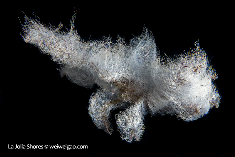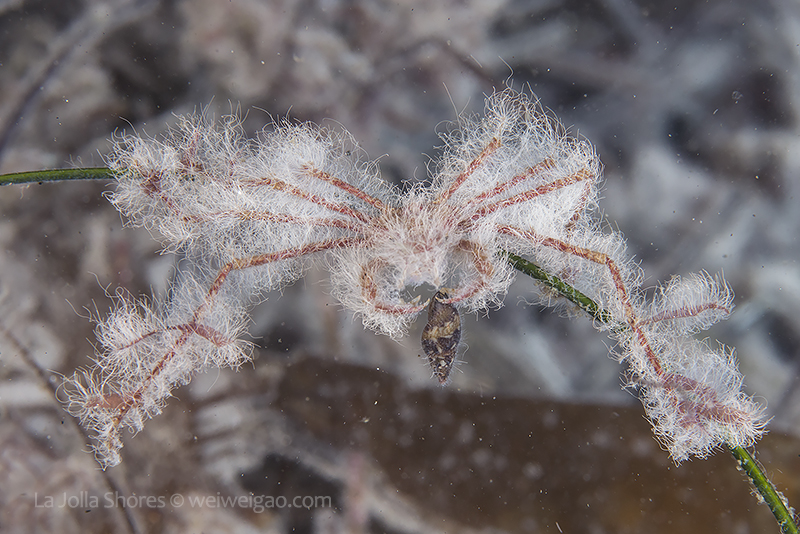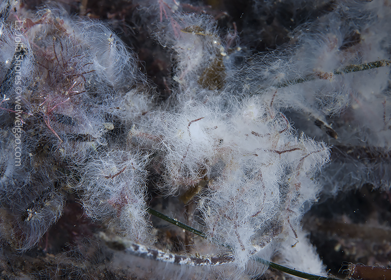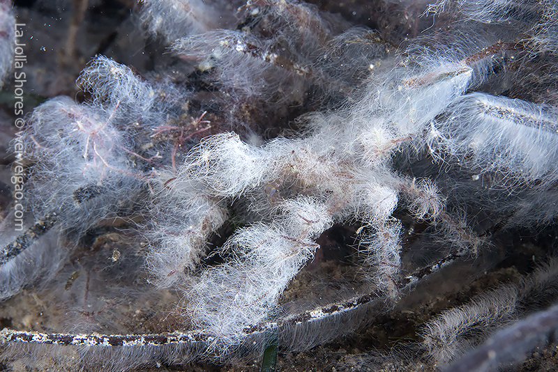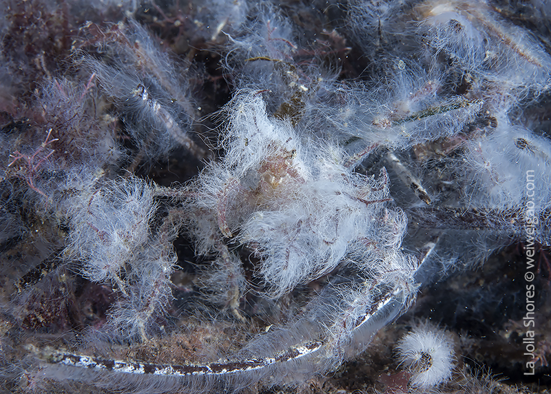 In the area, the white algae mat also covers rocks, kelp fonds, and seaweed branches, as if snow has just fallen in time of the winter holidays, changing a small area of the canyon into a winter wonderland. Diving with these creatures and watching them play have been a truly amazing experience.♦
