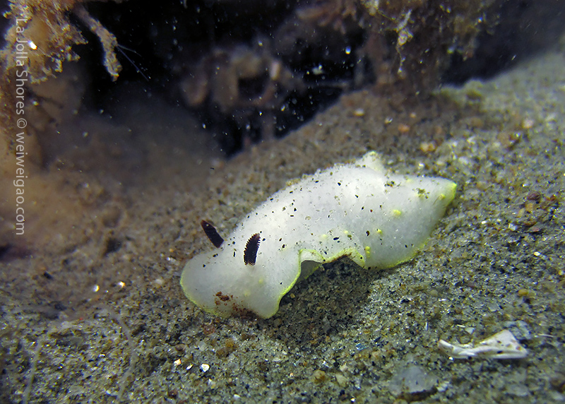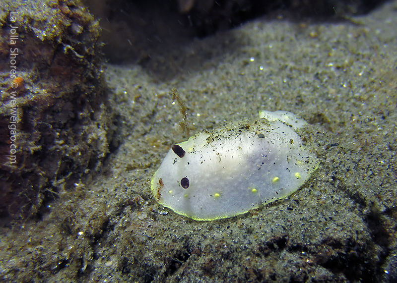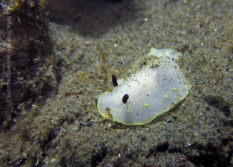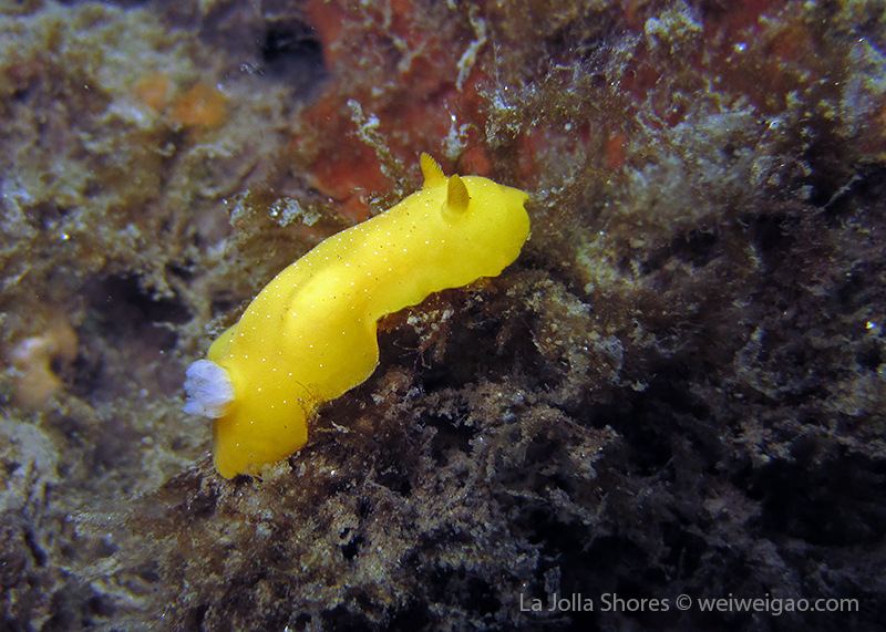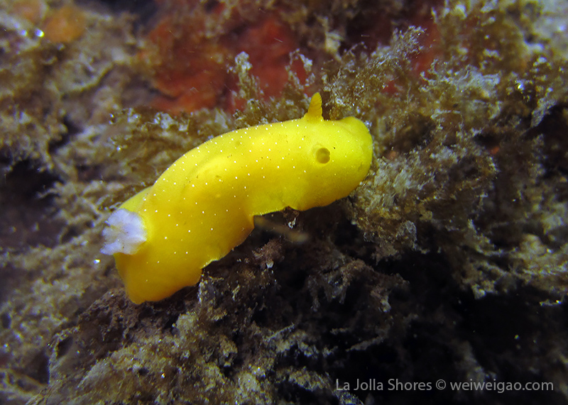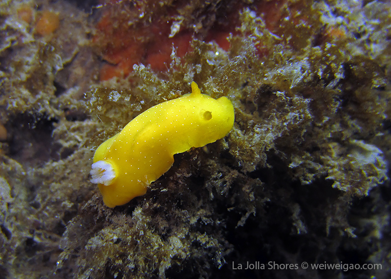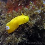 I dropped off at the main wall and swam to the north toward the Vallecitos Point. Came across a yellow spotted cadlina. They are popular in Point Loma and Scripps Canyon but not at the shores.