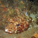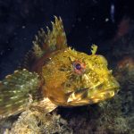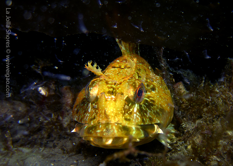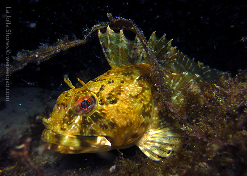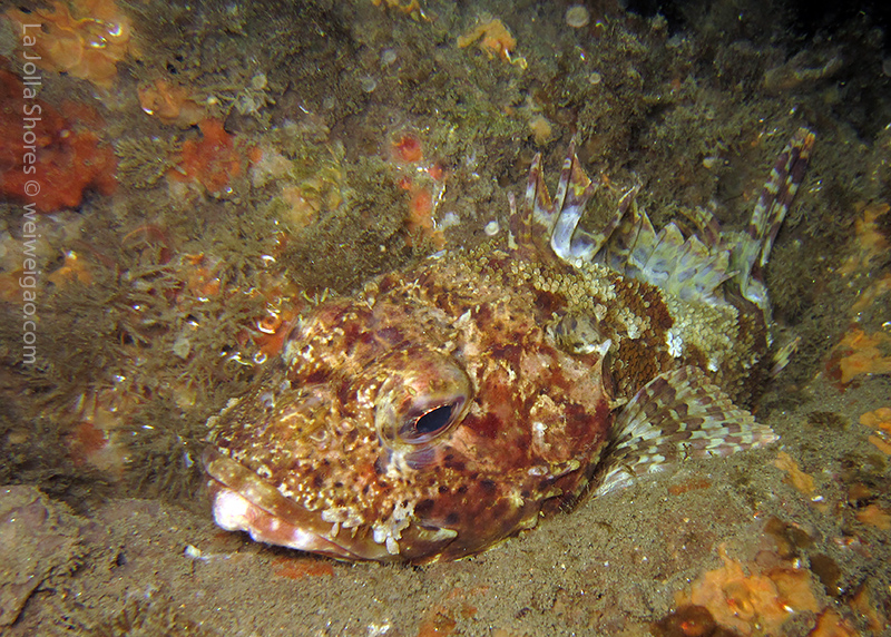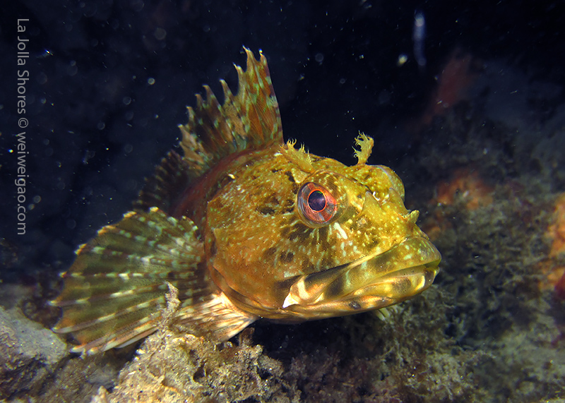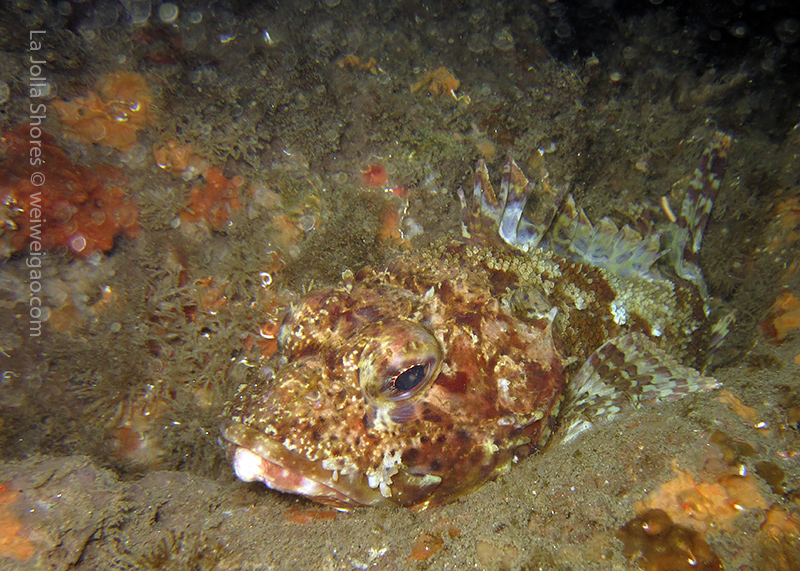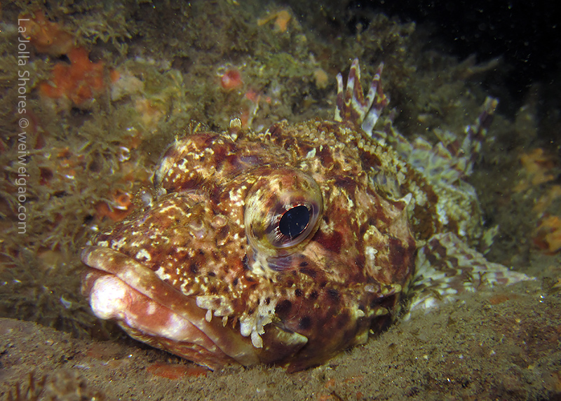 Near the Vallecitos Point, there was a huge scorpion fish nesting on the canyon wall. It was interesting because there were two huge harbor seals aggressively hunting around the area, stirring up all the dusts. However, they missed the scorpion fish.