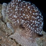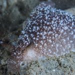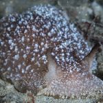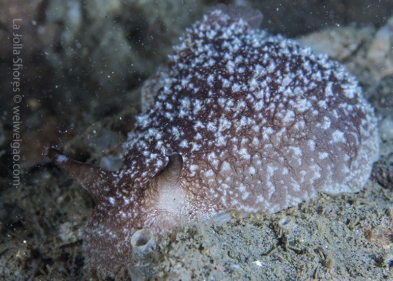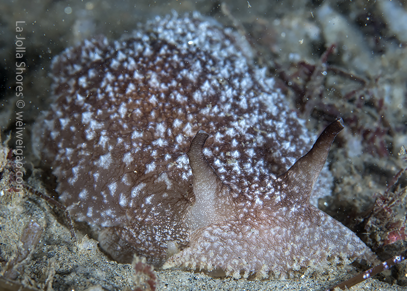 A California sea slug (Pleurobranchaea californica) at the bottom of the V point.