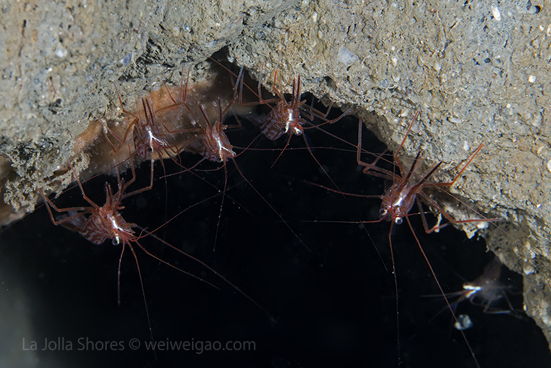 A lot of cleaning shrimps in one crevice.