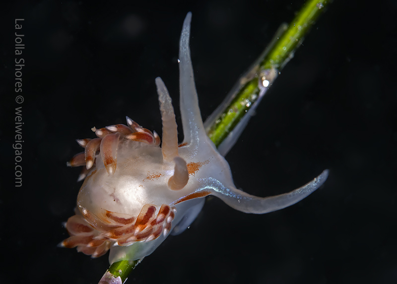 The Blacksmiths in the Cardinalfish den are huge. A Janolus was creeping along in the detritus, hope it evades all the Navanax that are still out, Sea Hares and a few Pipefish also out.
